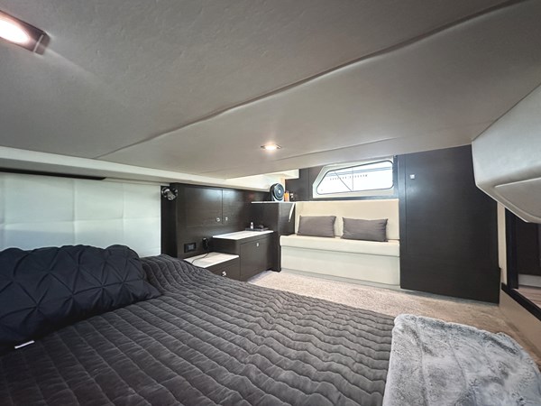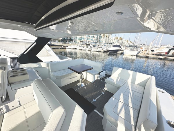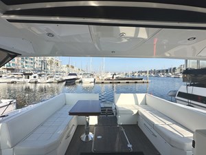 "LUX LIFE" boasts a versatile and elegantly designed cockpit, offering a variety of entertainment options. From the aft cockpit convertible seating to the bow lounges to the wet bar and grill, the possibilities for outdoor enjoyment are endless. Open her convertible hardtop to let the sun shine in or on cooler days, enclose the bridge with her custom canvas while you enjoy your day. The well-appointed galley features modern appliances and a generous countertop space, ideal for preparing gourmet meals while enjoying the panoramic views through the large windows.
