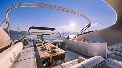 The Posillipo 95S is a masterpiece of design, seamlessly blending elegance with functionality. With sleek, modern lines and exceptional Italian craftsmanship, it is both visually stunning and highly efficient on the water. Among these remarkable yachts, M/Y ELVI stands out as truly one of a kind. Featuring an extended platform, she exemplifies a well-maintained 95S with impressive charter records.