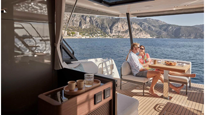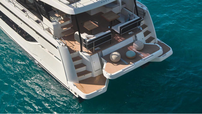 This multihull yacht reveals generous, brightly lit and refined living spaces, affording the ultimate in comfort. It promises life in harmony with the sea and at a gentle pace.