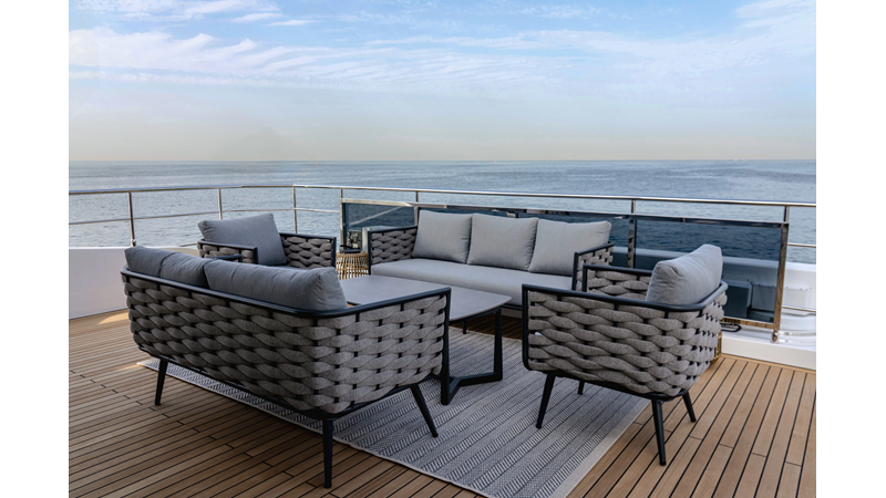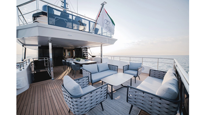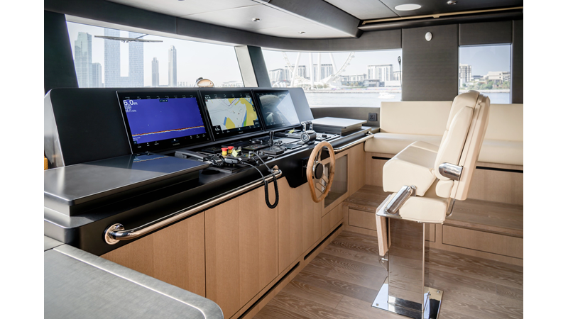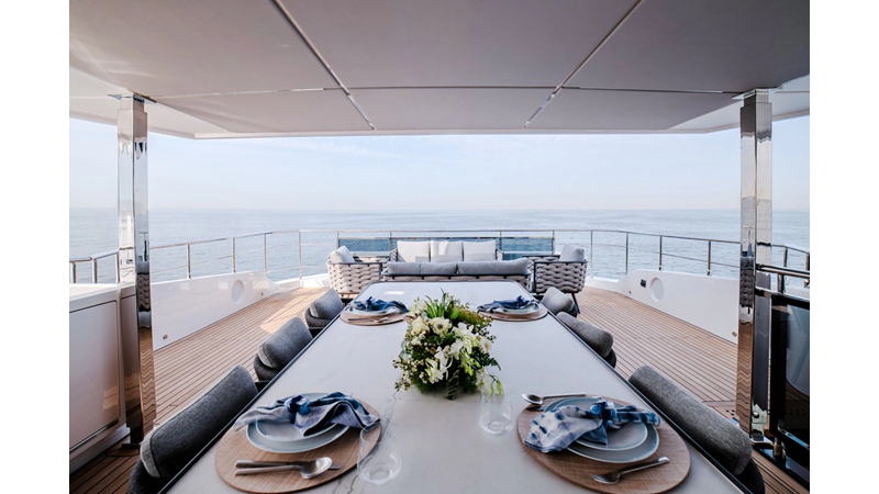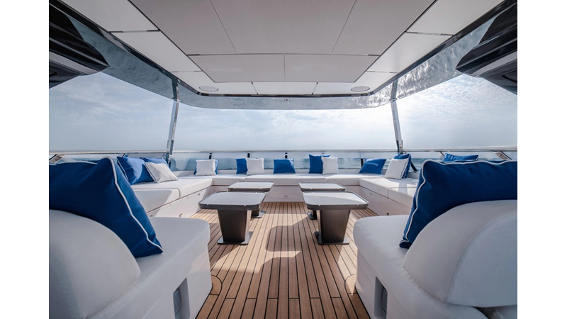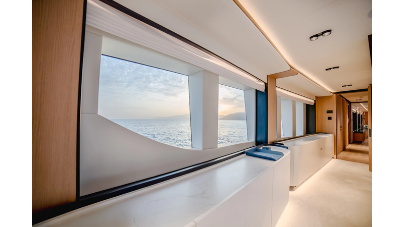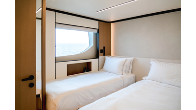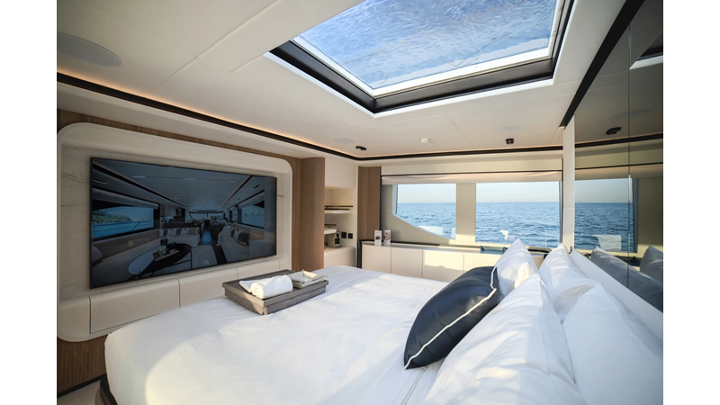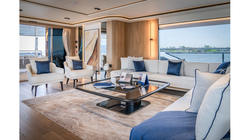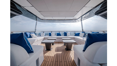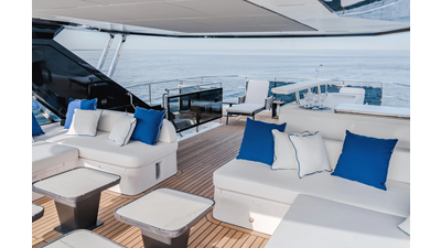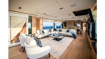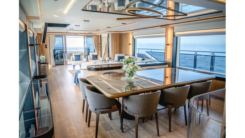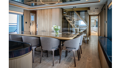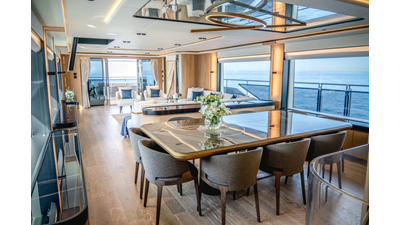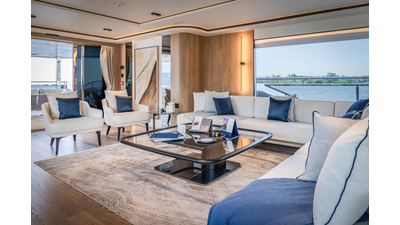 With accommodations for 12 guests across five beautifully appointed staterooms and six crew, the Majesty 112 is built for entertaining in refined comfort. Expansive decks offer multiple alfresco lounges and dining spaces ideal for hosting or relaxing at sea, while the spacious salon, framed by panoramic windows, welcomes guests with sweeping views and abundant natural light. Sophisticated furnishings and rich materials create an atmosphere of timeless elegance throughout.