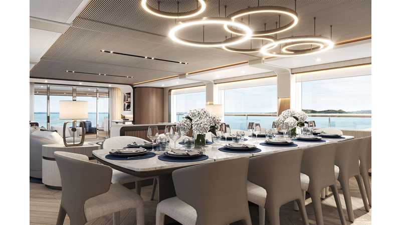 The Majesty 145 is a long-range superyacht that blends expansive indoor spaces with fluid outdoor living. Floor-to-ceiling glazing, open deck lounges, and a beach club elevate the onboard experience, while spacious guest cabins and high-end finishes create a luxurious atmosphere below decks. Designed for effortless cruising and exceptional comfort, the Majesty 145 delivers both performance and thoughtful detailing throughout.