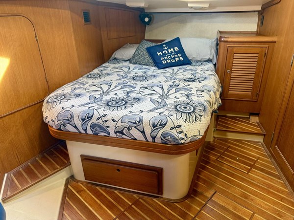 From her custom arch and davit system aft with integrated antennas, Star Link and solar panels, to the stainless steel deck tubing that runs the full perimeter of the boat, Make Me Laugh Again delivers thoughtful, purpose-built features for safe, comfortable, and convenient living on the water. Below decks, a washer/dryer and LiPo battery installations enhance daily living and reliability for extended off-the-grid cruising.