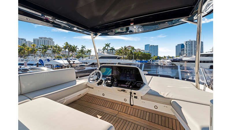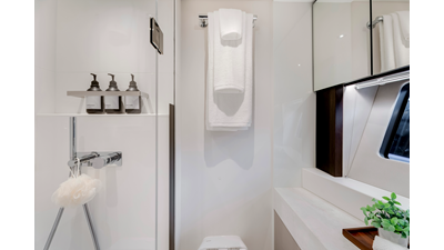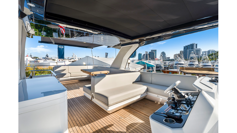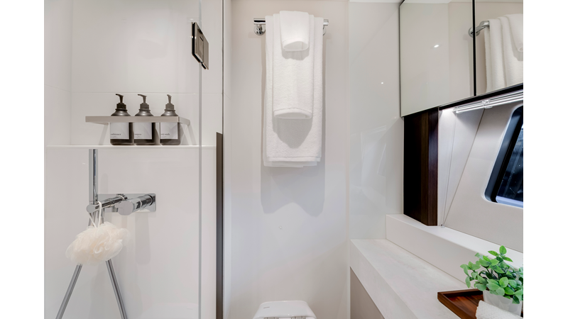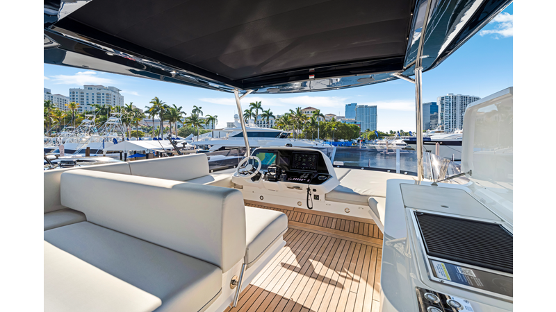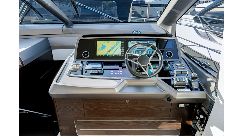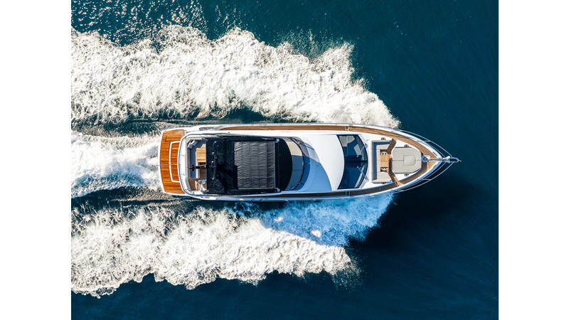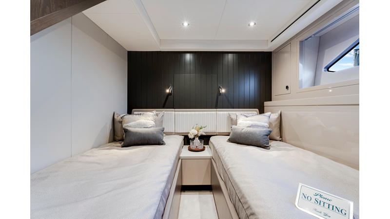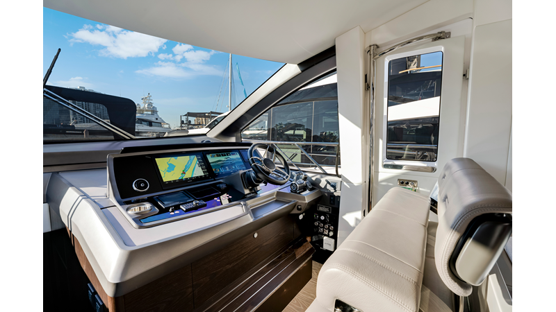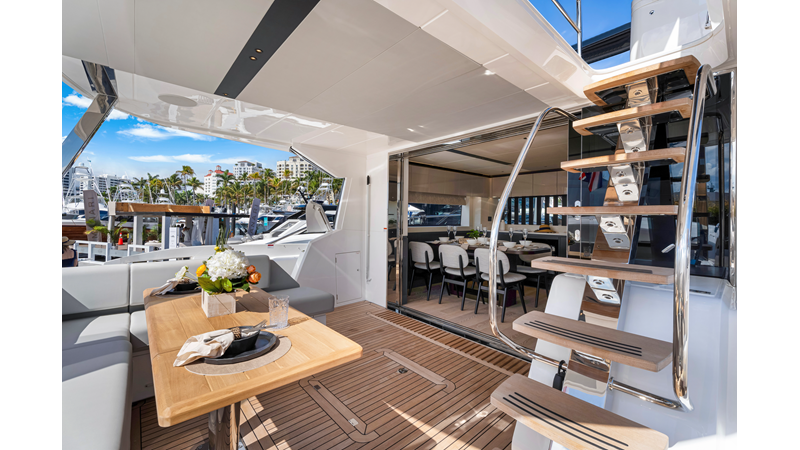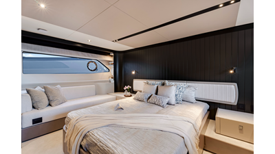 The fully-equipped aft galley with a large dinette links seamlessly to the cockpit via full-width sliding doors, helping to bring everyone together. The innovative design layout allows yachting owners to welcome guests with a strong focus on ambient lighting and interior detailing. Access to the spacious guest and master cabins is via the lower helm and elevated companion seating. The interiors boast exquisite attention to detail with a new palate of upholstery that provides a cool, crisp, and contemporary look, unmistakably a Manhattan.