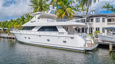 Constructed with a GRP hull and superstructure and finished with elegant teak decks, Margarita delivers both performance and style. She is powered by twin MTU 10V 2000 M94 diesel engines producing 1,500 hp each, allowing her to cruise comfortably at 19 knots and reach a top speed of 24 knots. Freshwater capacity is approximately 350 gallons.
