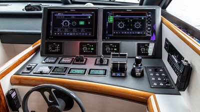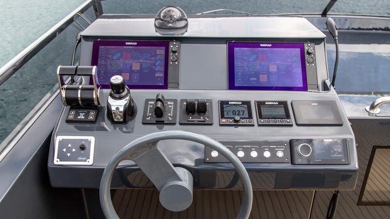 Having a Falcon 80 as a working testbed enables fine-tuning of these integrated systems in real-world conditions. The project was a collaborative effort, developed in close partnership with the team from Navico Connect. Onboard, the latest generation of Simrad equipment has been installed, and its integration with all onboard systems has been carefully engineered to offer the most seamless and efficient user experience possible for those at the helm.