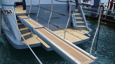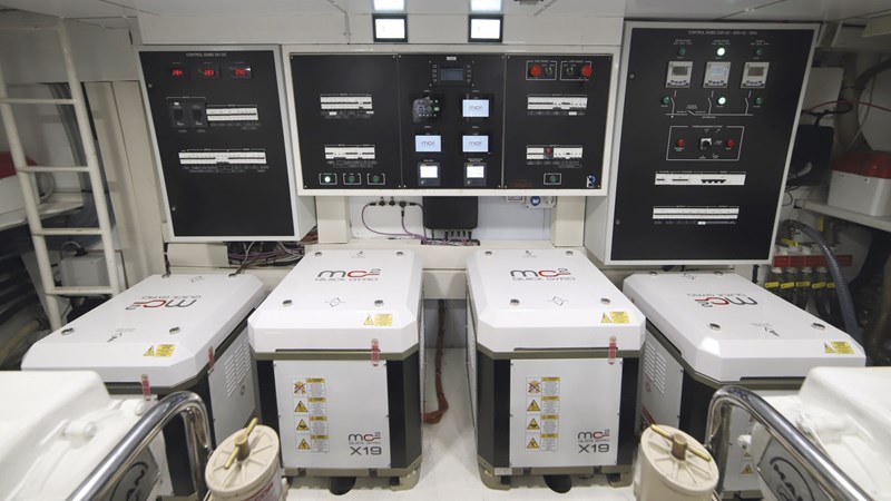 At the heart of the transformation is Quick’s latest stabilization system—a comprehensive solution that integrates a gyroscope and stabilizing fins. Designed primarily to counteract roll, the system also mitigates pitch. And as anyone with experience at sea knows, being able to test such a system is incredibly valuable. No two yachts behave the same way, and sea conditions can vary drastically—wind, wake, hull shape below the waterline, and freeboard height all influence stabilization performance.