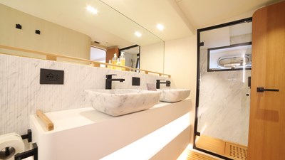 The Falcon 80 is not just a display showroom for an array of accessories, systems, and electronics—it’s living proof that a nearly 30-year-old yacht can be outfitted with the most cutting-edge technology available today. The result is a standard of life on board that rivals even the latest generation of vessels.