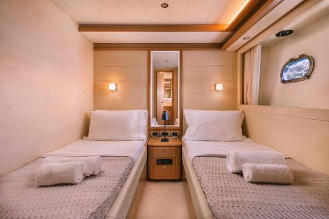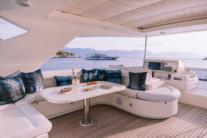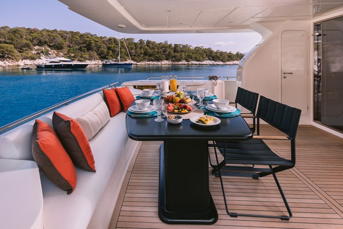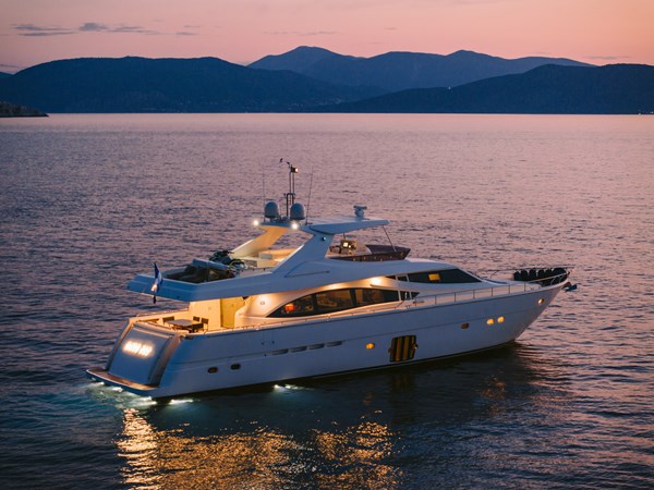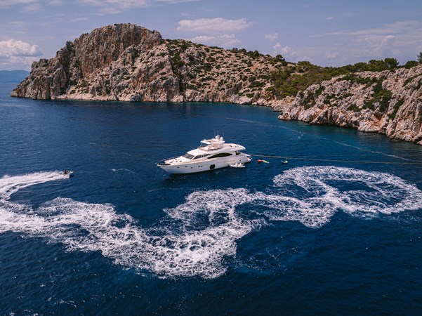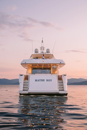 M/Y MAYBE NOT built in 2009 and refitted in 2022 is a superb example of thehugely successful Ferretti 830 series, sheaccommodates 8 guests in 4 cabins and cruisescomfortably at 24 knots. Perfectly sized for theGreek islands, she slips effortlessly into postcardharbours and hidden bays that bigger yachts canonly admire from afar.