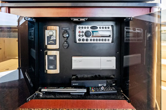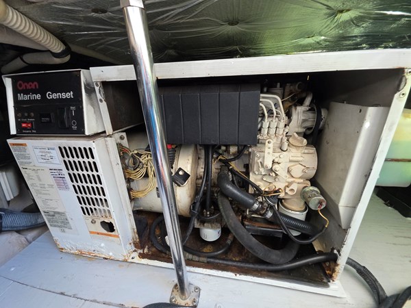 Even the engine room tells a story of care and pride. It is exceptionally clean and thoughtfully laid out, providing ample space for easy checks and maintenance. The powerful twin Cummins QSC-500's are up to date on all service and run flawlessly. The Onan genset is also easily accessible for peace of mind.