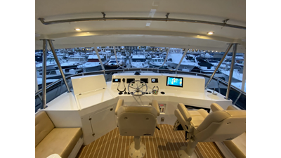 Equipped with a stand-up engine room and a cockpit day head with shower, this yacht also boasts a generous 1,200-gallon fuel capacity. With standard 715hp QSM-11 Cummins engines or the option of 800hp MAN “Common Rail” diesels, the Mikelson 57 is a powerhouse, offering a top-of-the-line boating experience. The generous stand-up engine room provides easy access to all systems, and the largest flying bridge in its class makes the Mikelson 57 a must-see.