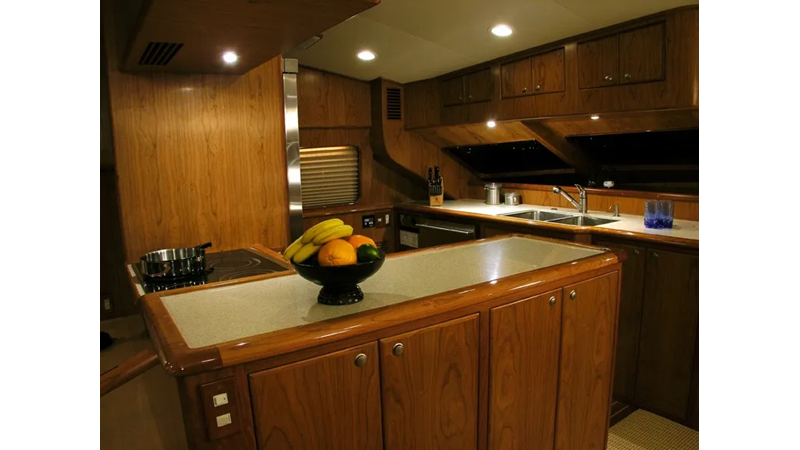 With the option of either 3 or 4 staterooms, the full-beam mid-ship master stateroom offers unmatched comfort and luxury. And, with the addition of aft crew quarters, the Mikelson 75 truly has everything you need to live life to the fullest. The stand-up engine room and the optional fully enclosed wheelhouse make this vessel a true marvel of engineering, while the large split-level cockpit with molded in-transom bait tanks and optional cockpit day head with shower ensure that you have everything you need for a memorable day on the water.