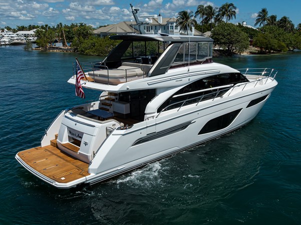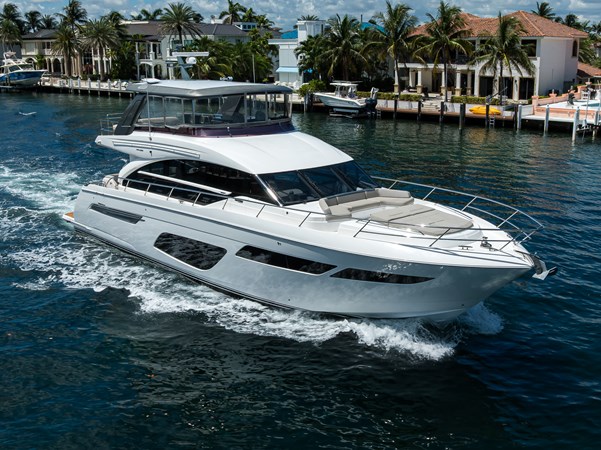 Introducing Miss Amy, a beautifully appointed U.S.-spec 2020 Princess F70 that seamlessly blends elegance with impressive performance. Designed to captivate even the most discerning yacht owners, she features a refined interior finished in high-gloss walnut wood throughout, complemented by “Carrara” white countertops. Powered by twin 1400 HP MAN engines, Miss Amy reaches speeds of over 35 knots and cruises comfortably in the mid-to-upper 20-knot range.