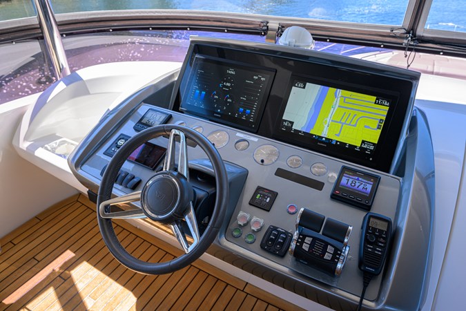 Her spacious 4-stateroom, 3-head layout offers exceptional volume for a 70’ yacht, while the crew quarters in the transom provide comfortable accommodations for a captain and crew. This well-equipped 2020 Princess F70 stands out from others on the market with notable features including a Seakeeper 16 gyro stabilizer, Garmin electronics package, Allure trim package, water maker, Starlink connectivity, and much more.
