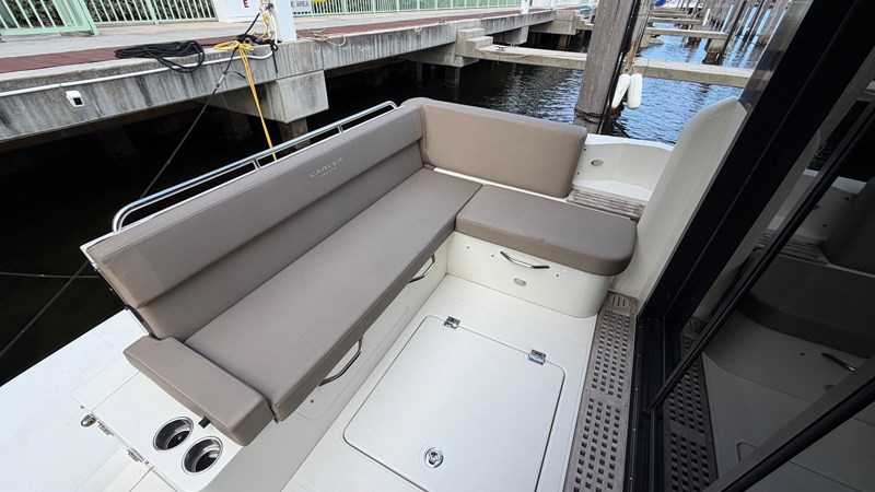 - Excellent sightlines from helm with modern Carver glasswork