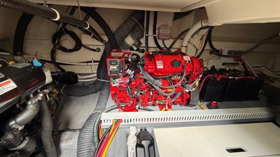 The boat’s systems are clean, organized, and well laid-out, with both the AC and DC distribution panels looking factory-fresh. This is the rare combination of luxury, sport performance, and sensible layout that Carver is known for.