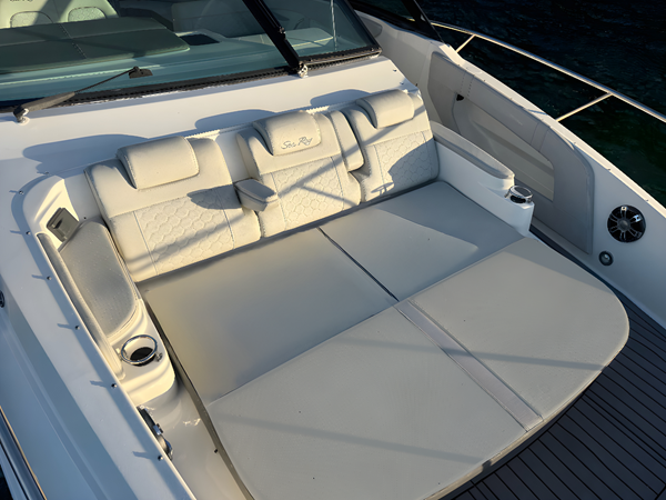The 2021 Sea Ray Sundancer 320 is a premium sport cruiser that perfectly blends performance, comfort, and modern design. Featuring a spacious bow lounge, versatile cockpit, and a beautifully appointed cabin for up to four guests, this model offers seamless indoor-outdoor living.
