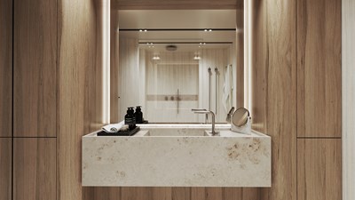 The Moon 100 Power offers unmatched space in its class thanks to its wide 13.7m beam. Owners can work with the shipyard to customise the interior to their personal style — from the main saloon to the cabins, materials, and finishes.