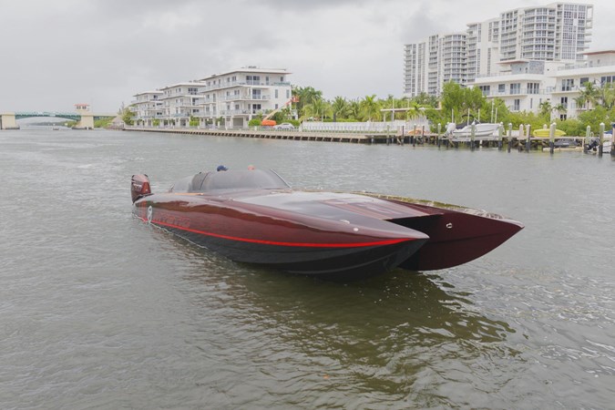 This spectacular C4000 Mystic was the show stopper at the annual Poker Run event. She looks like something from a James Bond Movie, and with a cruising speed of 100mph she probably should be featured in one. The C4000 has the reputation for being the most comfortable rough water ride of any outboard catamaran on the market and you don't need to be a professional racer to drive her. She is in exceptional shape by her fastidious owner and is kept covered and out of the water when not in use.