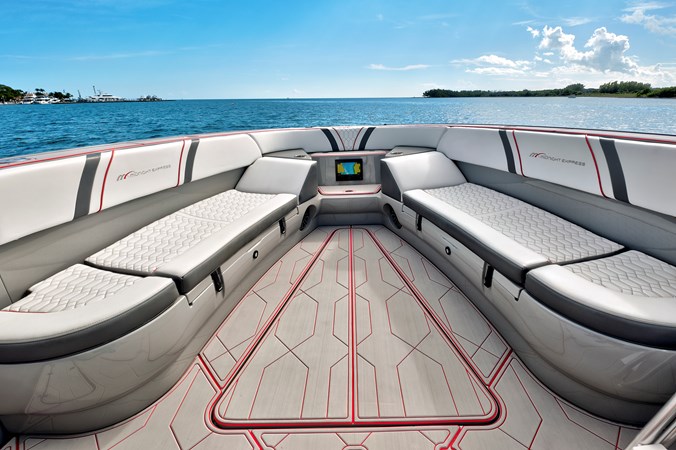 The 2023 Midnight Express 43 Open is engineered for serious offshore performance, delivering a rare blend of speed, stability, and luxury. Its advanced deep-V hull slices through chop with confidence, while optional quad or quint outboards provide exhilarating top-end power. A wide beam offers exceptional deck space with premium seating, full-beam storage, and a state-of-the-art helm outfitted with multifunction Garmin displays. From integrated LED lighting to precision-molded composites, every detail showcases high-performance craftsmanship. Whether you’re running to the sandbar or cruising offshore, the 43 Open delivers unmatched versatility, comfort, and control.