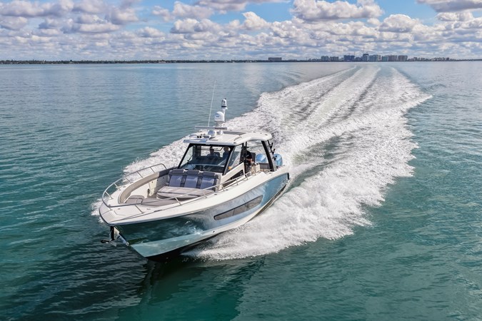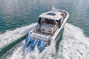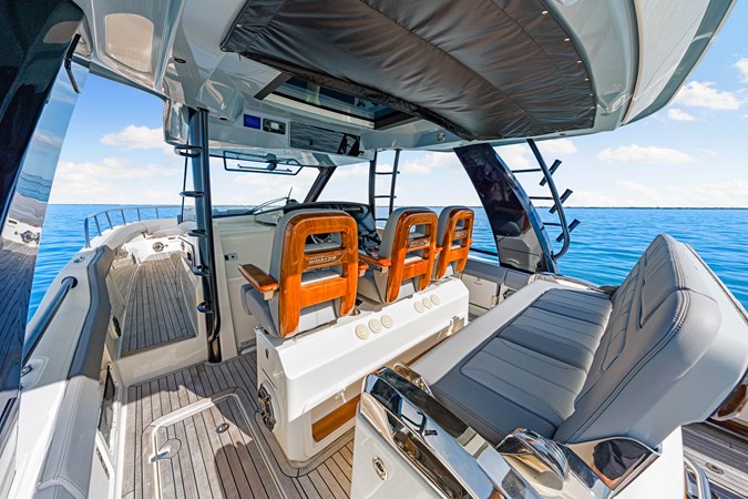Finished in striking Steel Blue and loaded to the gills, this flagship 420 Outrage blends luxury cruising with serious offshore performance. Teak accents throughout, Raymarine XL electronics, Seakeeper stabilization, underwater lighting, and triple Mercury 600 JPOs with only 66 hours make this a true head-turner—built to entertain, run fast, and go anywhere in total comfort.