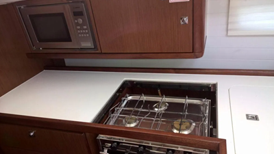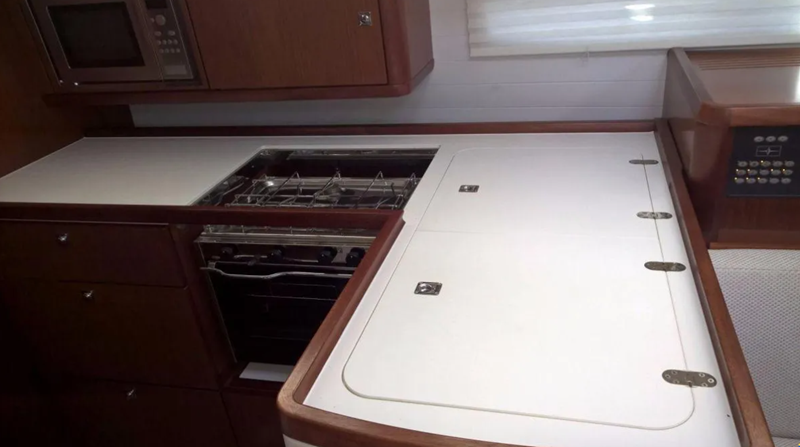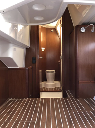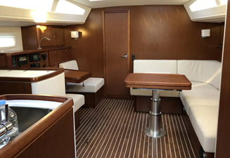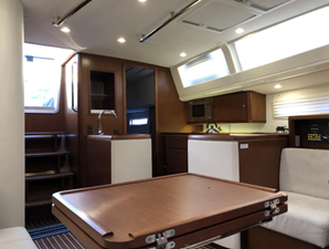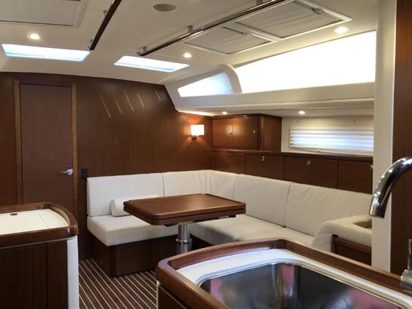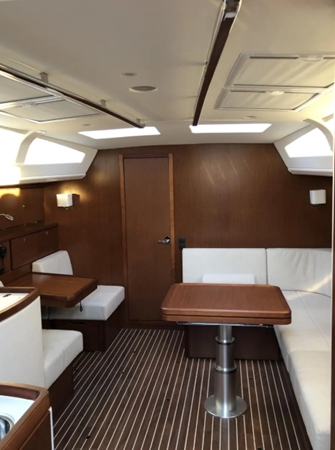 Her sailing performance is optimized with the Volvo Penta D2 75 Turbo engine, paired with saildrive propulsion and a fixed bulb keel, providing stable and predictable handling. The sail plan, including in-mast furling mainsail, roller reefing jib, and nearly-new CODE 0, ensures versatility and efficiency in various wind conditions. Integrated navigation electronics and autopilot deliver precise control and safety at sea.