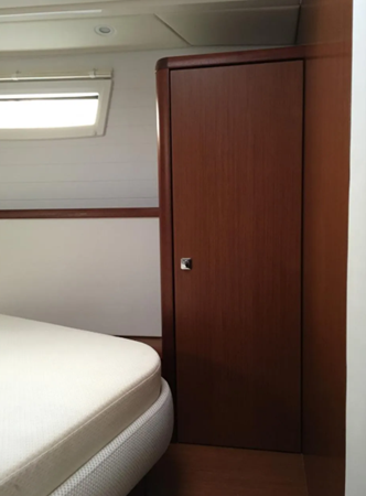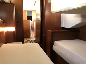 Accommodation includes a forward owner's cabin with en-suite head, generous storage, and reading lights. The midship cabins serve as guest accommodations with a full heads. Each space is thoughtfully designed for comfort, including well-ventilated cabins and practical amenities for longer passages. Crew or additional guests can be easily accommodated with separate access to the cockpit and deck systems.