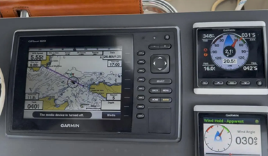 - Navigation suite: Garmin GPSMap chartplotter, radar, autopilot, VHF, NMEA2000 compatibility