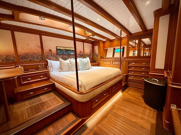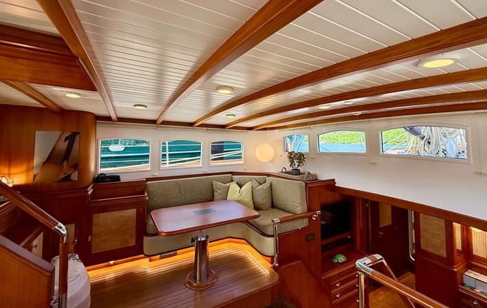 NAMUUN was the second Truly Classic 108 built and was delivered to her owner in 2012, who named her SIMBA. The yacht spent several years in the Eastern Mediterranean, whereafter her second and current owner used her in the Western Mediterranean and the Caribbean. NAMUUN received a substantial overhaul and refit as described in this brochure, which was executed by the experts of Pendennis Shipyards in the UK in 2024/2025, transforming her into a near new yacht. With a layout including 4 cabins sleeping 8 guests, she provides an elaborate accommodation rarely seen on this type of yacht at this size. The yacht has been kept in private Bureau Veritas class and to achieve charter compliance should be possible. NAMUUN handles very nicely with her slab-reef mainsail onto a park Avenue boom and hydraulic furlers on the head sails. On a reach she will do 13 kts in 20 kts of wind. The alfresco dining and socialising in the centre cockpit are a great feature as well as the spacious aft working cockpit and the designated Captains/ Navigation deckhouse. The main deckhouse allows for dining and socialising and going down the stairs forward, there is a vey nice salon for relaxing and TV watching. NAMUUN boasts an great full beam master cabin with en-suite in the aft section of the yacht. In the forward section are the galley, the crew mess and the crew accommodations. With the extent of all the work done and her great condition, NAMUUN is a rare find; here is a great chance to acquire a beautiful 108ft Truly Classic yacht.