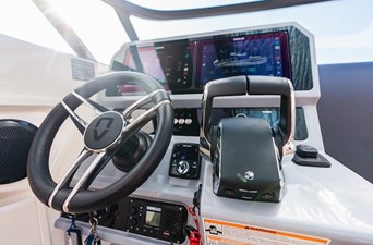 The 2025 Navan S30 is a premium center console boat designed for both performance and luxury, ideal for coastal cruising and day adventures. With an overall length of 33′ 7″ and a beam of 9′ 10″, it offers ample space for up to 12 passengers. Powered by twin Mercury 300XL JPO 4-Stroke outboard engines, the S30 delivers impressive performance. The boat features a patented twin-step T-Step Hull for exceptional handling and stability. Onboard amenities include a fully equipped exterior prep center with an electric grill, sink, and inverter, a 12-volt air conditioning system with a dedicated battery bank, and a stand-up compartment with a shower and sink. The interior offers a double berth with natural LED lighting, providing comfort for overnight stays. With its combination of performance, comfort, and innovative design, the Navan S30 is well suited for those seeking a versatile and luxurious boating experience.