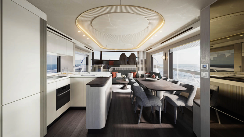 The Navetta 66 represents a smart progression in Absolute’s Navetta series, offering more space and versatility while maintaining an efficient semi-displacement profile. Her generous deck areas include a protected cockpit, a high-volume flybridge, and a roomy foredeck. Inside, a full-beam master cabin, guest cabins, and crew quarters ensure functionality and privacy. Built for comfortable long-distance cruising, the Navetta 66 delivers refined Italian design, structural integrity, and sensible performance for owners who value space and liveability.