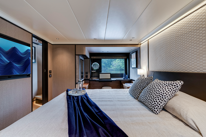 Finally, the boat features a bow master cabin with private access, luxury furnishings and premium finishes.