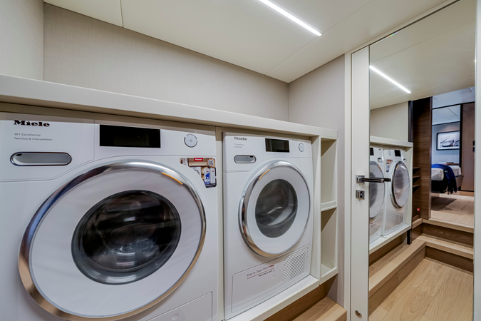 The space on the Navetta 75 is comparable to what you would expect from a larger yacht. The full-beam owner’s cabin is located at bow, with private access from the main lounge and an en-suite bathroom. On a raised level compared to the lower deck, it offers a broader view of the sea, greater privacy and more quiet. The middle of the boat also houses two double cabins with private bathrooms and a twin bed cabin with a day head. The boat meets both practical and aesthetic needs with sliding doors and generous storage compartments, ensuring that sleeping and living areas are always neat and comfortable.