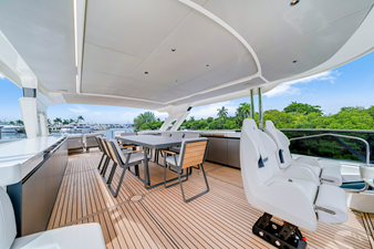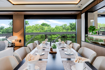 Seamlessly reflecting the interiors, the external areas are optimized to ensure the highest versatility and ease of movement onboard. With two stairways to quickly climb to the flybridge, from the stern and the bow, the crew can move wherever needed, ensuring privacy for the owner and without interfering with guests. A third and a fourth mooring station are available to enhance the two steering consoles for unparalleled maneuverability. Thanks to modular furnishings and the absence of fixed structural elements, the flybridge and cockpit areas can easily adapt to different needs, ensuring a truly unique and immersive onboard experience.