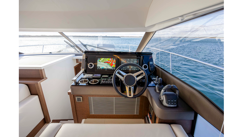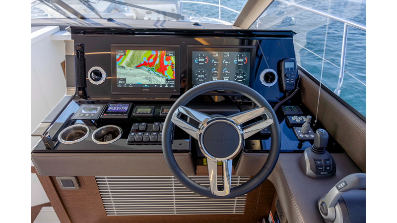 The Volvo IPS joystick docking system makes this 520 easier to maneuver than boats half its size! With 3 cabins, two heads plus additional crew/kid cabin w/ head aft the 520 has the feel of a much larger yacht!