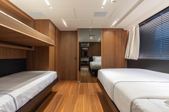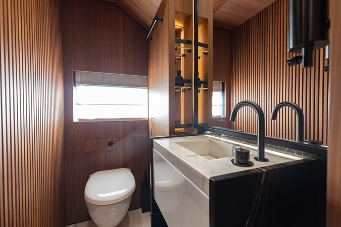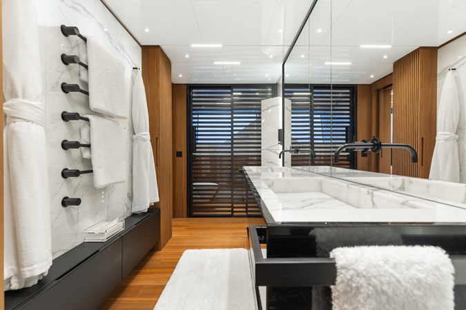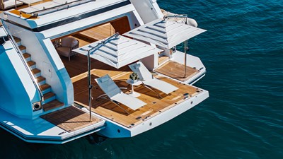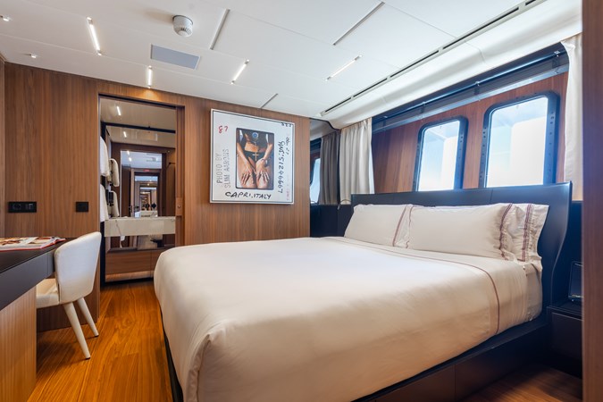 Designed for both relaxation and socializing, NEVERLAND II features an on-deck jacuzzi and generous sun lounge, perfectly positioned to capture sweeping panoramic views. Her class-leading, two-level master suite is a true standout, complete with a luxurious ensuite and spacious walk-in wardrobe, delivering a private owner’s retreat rarely found in this size range.