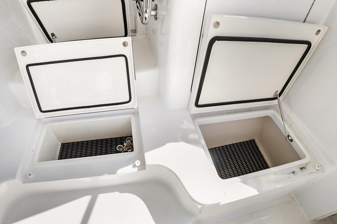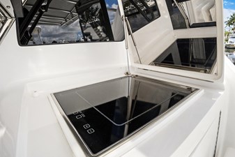 The cockpit features a well-considered layout, equipped with numerous electric outlets, spacious fish boxes, misters, a sizable transom live-well, and ample mezzanine seating that includes refrigeration. This GT63 stands out on the market due to its exceptional outfitting and low hours.