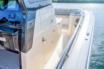 - Fiberglass Leaning Post w/ Bait Prep Station, Sink, Tackle Drawers, Trash Can & Helm Seats w/ Folding Bolsters & Armrests, 45 qt. YETI Cooler