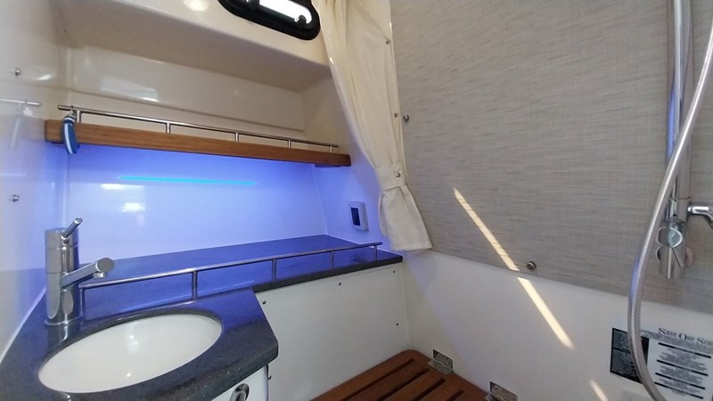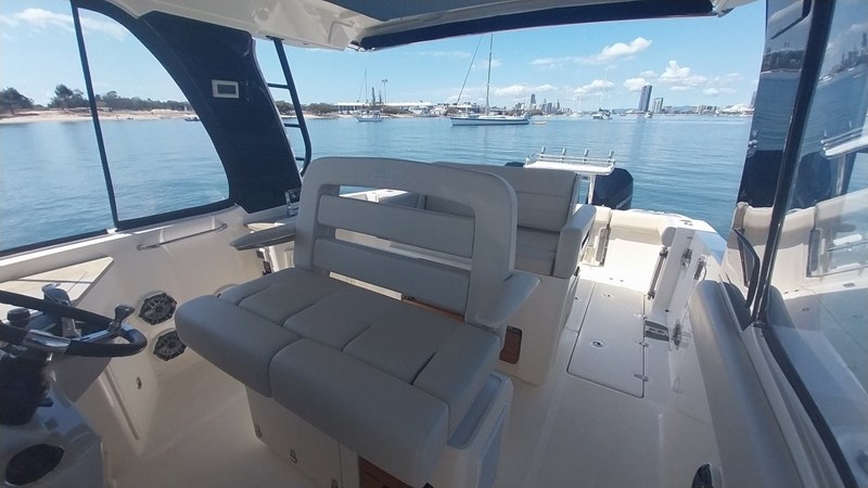 For the avid angler, this boat is a dream come true. Equipped with a large live well, kill tanks, rod holders, and a bait prep station. Inviting you to relax and unwind in style, the 350 Realm features a comfortable and spacious bow lounge, a well-appointed cabin with a cozy V-berth, a fully equipped head, and an inviting cockpit designed for socialising and entertaining.