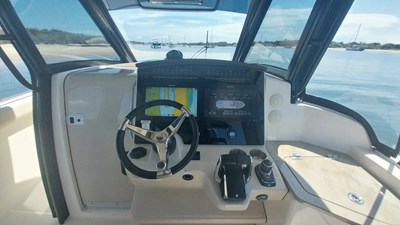 Stay connected with state-of-the art electronics and Raymarine navigation package. The 350 Realm also offers a premium entertainment system, joystick piloting, underwater lights, hardtop storage rack, and a retractable sunshade to enhance your on-water experience.