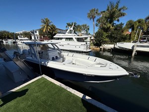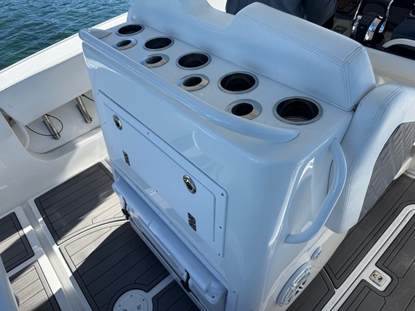 Be ready to be blown away by her speeds, efficiency, limited bow rise, dry ride (thanks to the patented Integrated Spray Reduction design), and incredibly comfortable ride in calm to grueling sea conditions. She has the widest, best in class beam of 11' coupled with her patented double step hull.