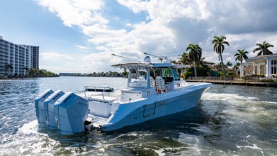 She is designed with the diver, cruiser, and fisherman in mind. Fishing features include dual fishboxes, three livewells, and outriggers. Cruising features include Seakeeper and an extensive Garmin electronics package.