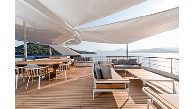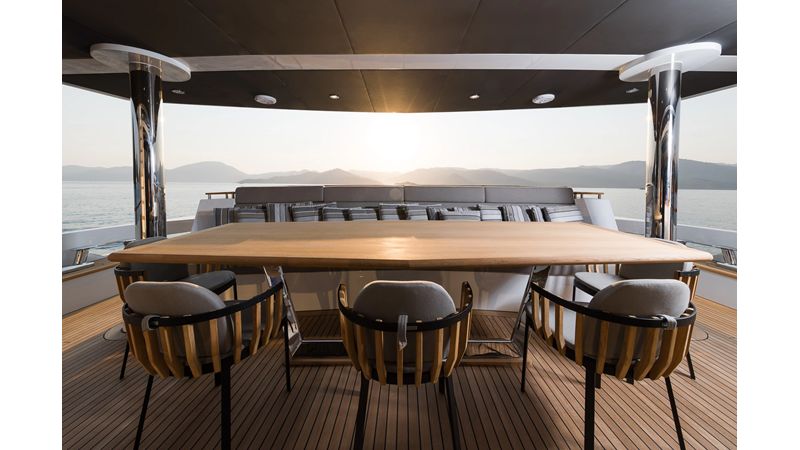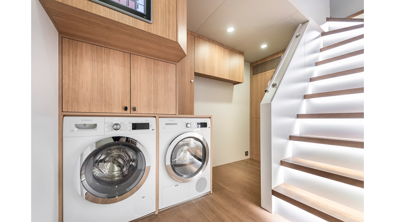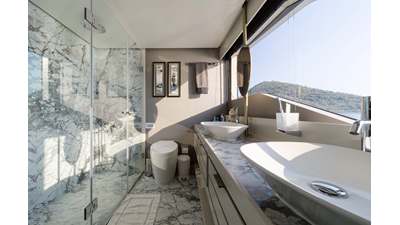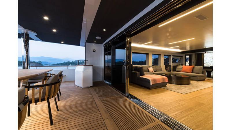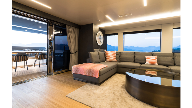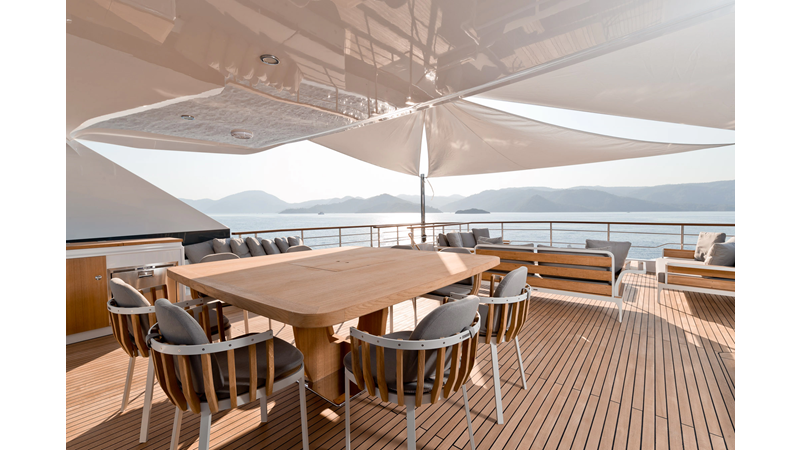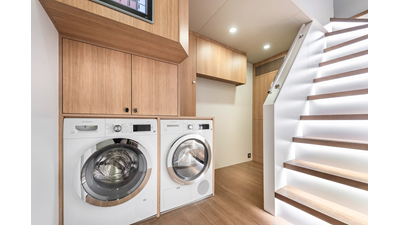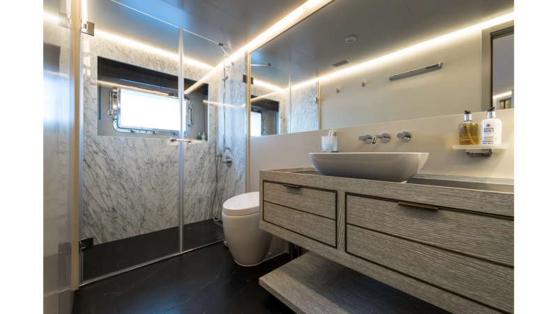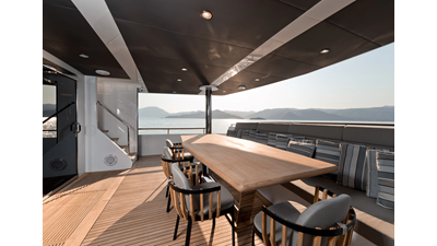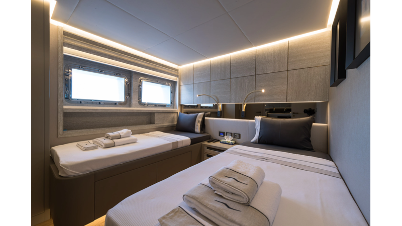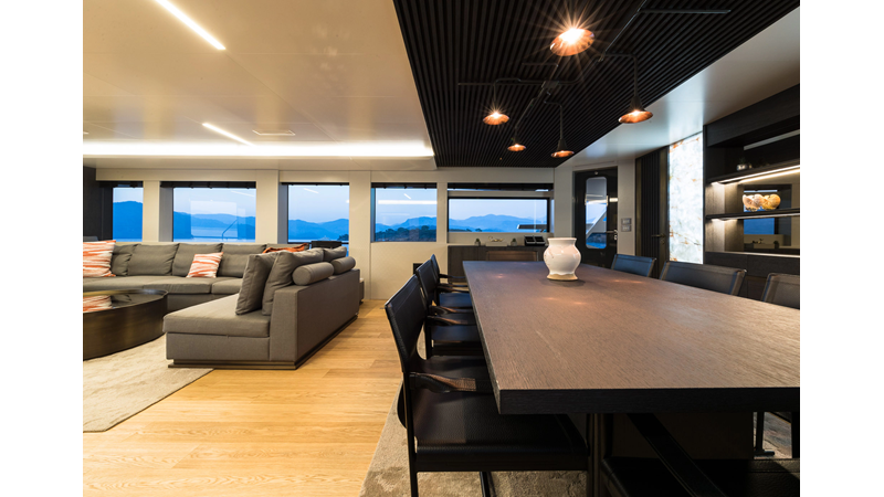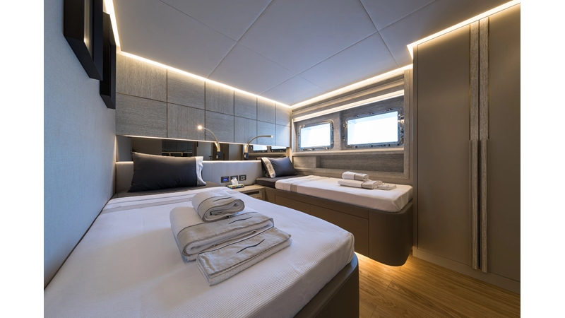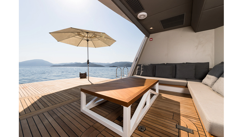 Opacmare Transformer IMO Tier III engines are an option and are essentially becoming required for new build deliveries in 2024 and later due to new EPA requirements. Her large open upper deck features a massive 2,500kg davit allowing you to carry up to a 8.5m tender plus additional water sports toys. (Hull #2 carries a 28ft Axopar on deck). A new layout created for North American clients features a country kitchen forward on the main deck allowing a more casual gathering place for guests and crew for meals.