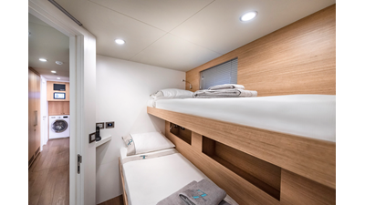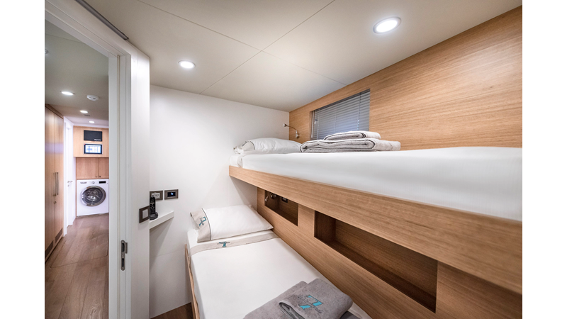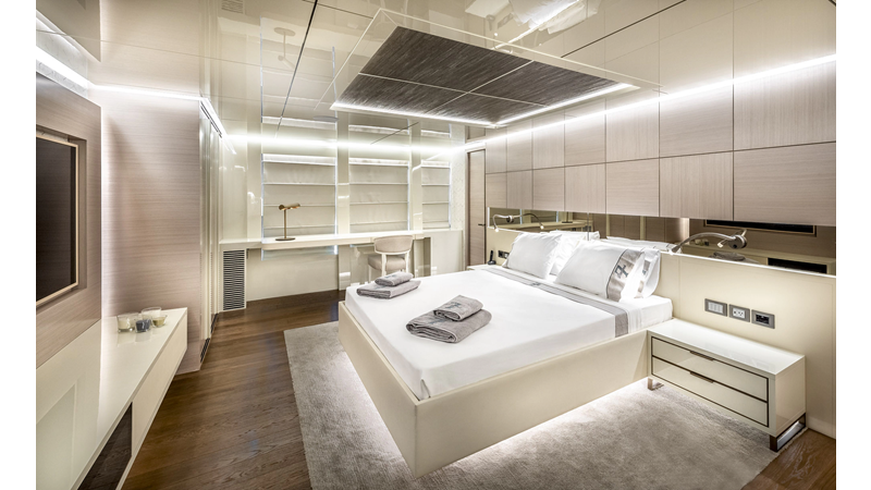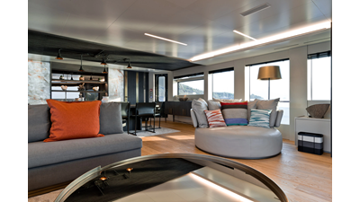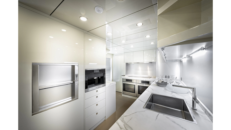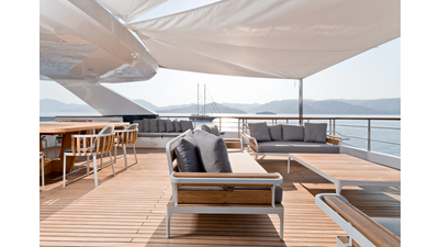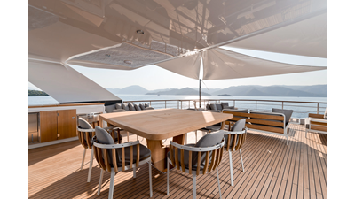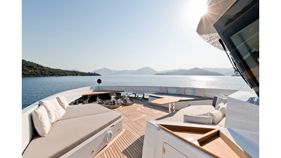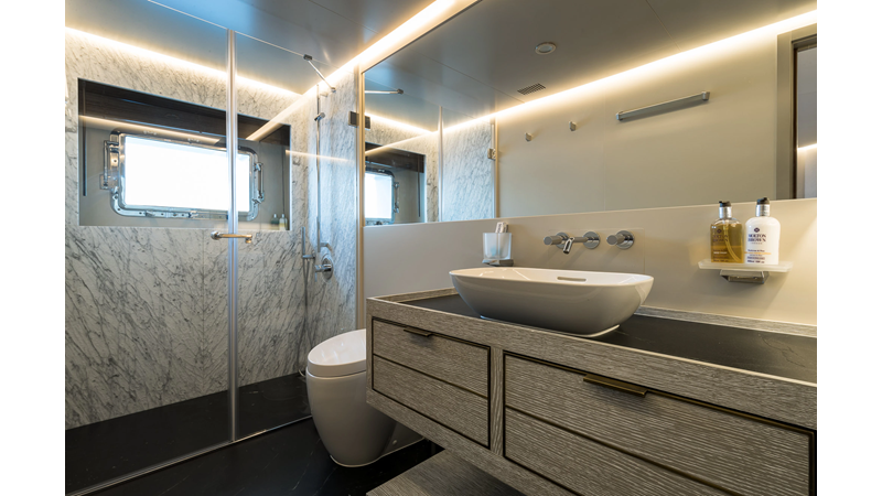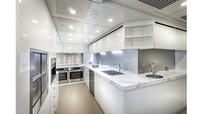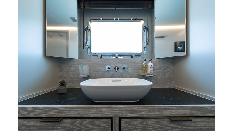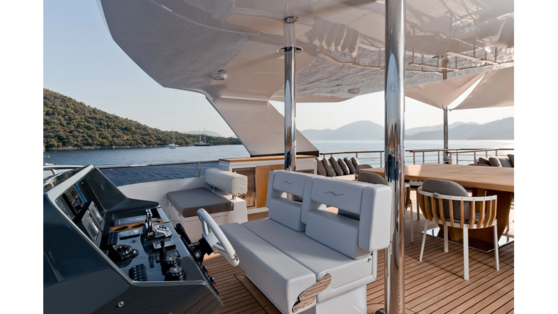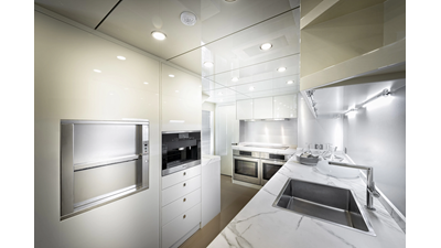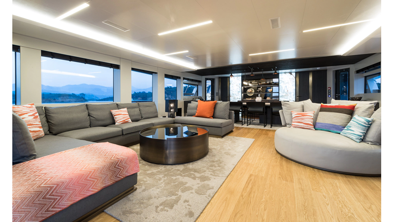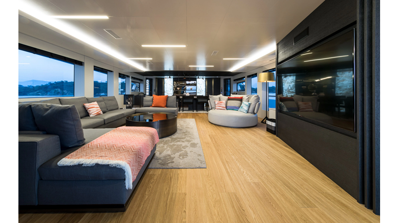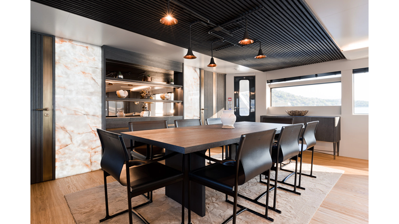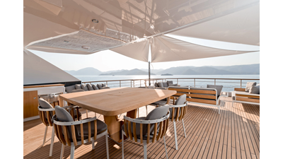 Opacmare Transformer IMO Tier III engines are an option and are essentially becoming required for new build deliveries in 2024 and later due to new EPA requirements. Her large open upper deck features a massive 2,500kg davit allowing you to carry up to a 8.5m tender plus additional water sports toys. (Hull #2 carries a 28ft Axopar on deck). A new layout created for North American clients features a country kitchen forward on the main deck allowing a more casual gathering place for guests and crew for meals.