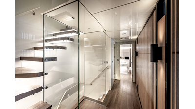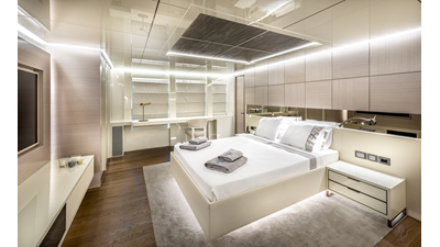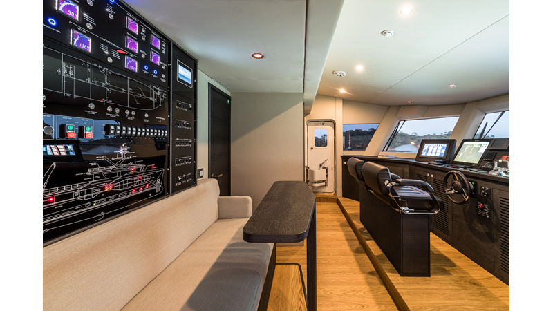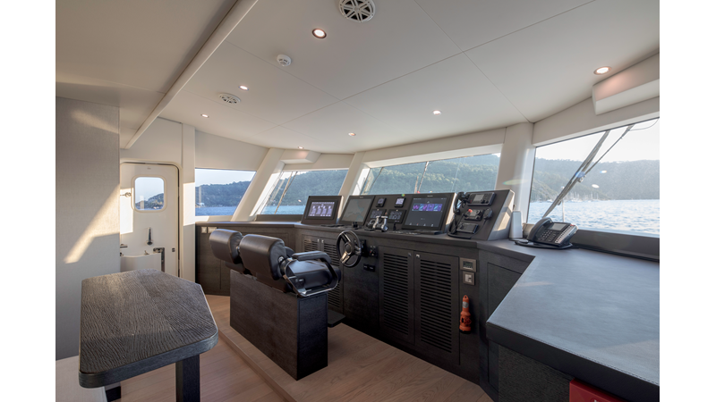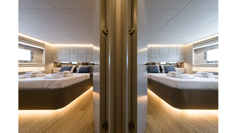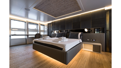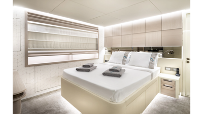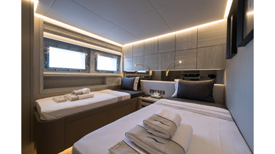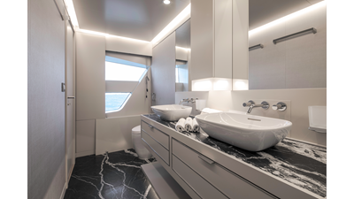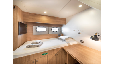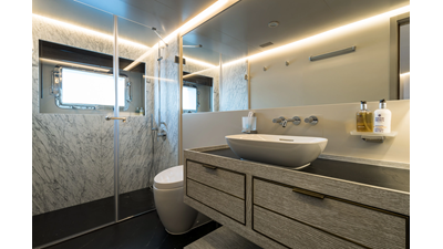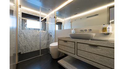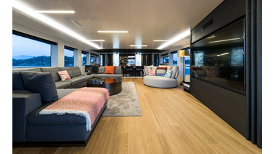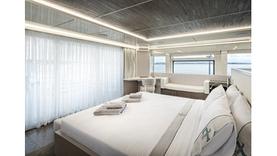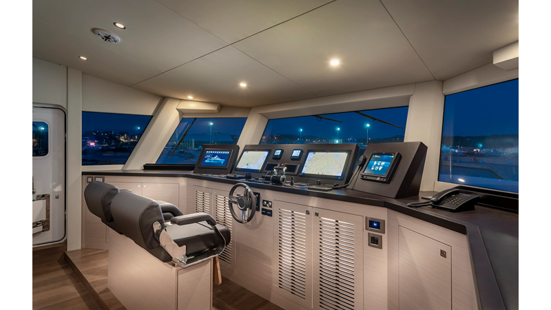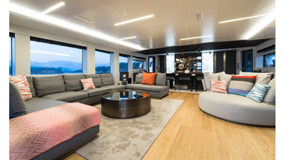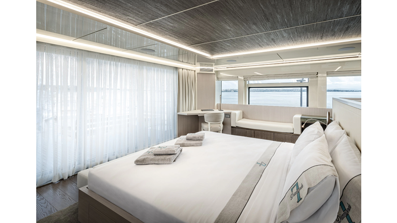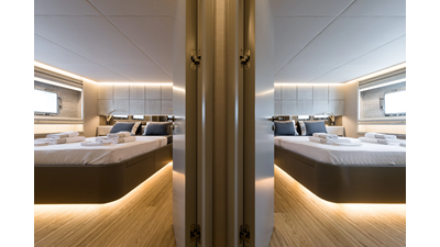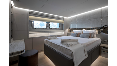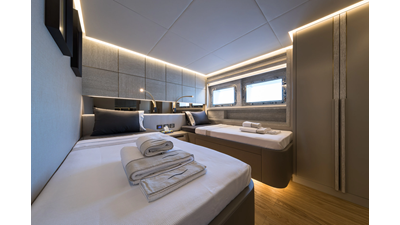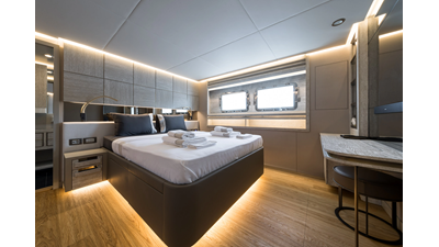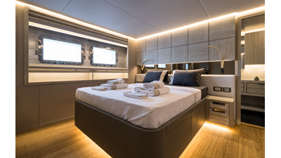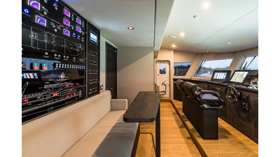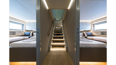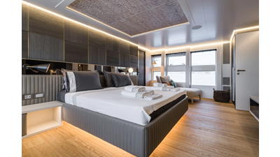 New Construction - Steel Hull/Full Displacement - 4,500nm Range - 5 or 6 cabin layouts available. 6 cabin layout includes a private owners deck on the upper level where the sky lounge is typically located as featured on Hull #4. The 5 cabin layout has the more traditional layout with the master forward on the main deck, 4 additional cabins located on the lower deck & a skylounge.