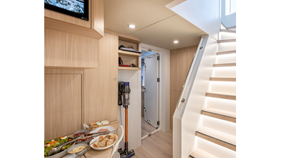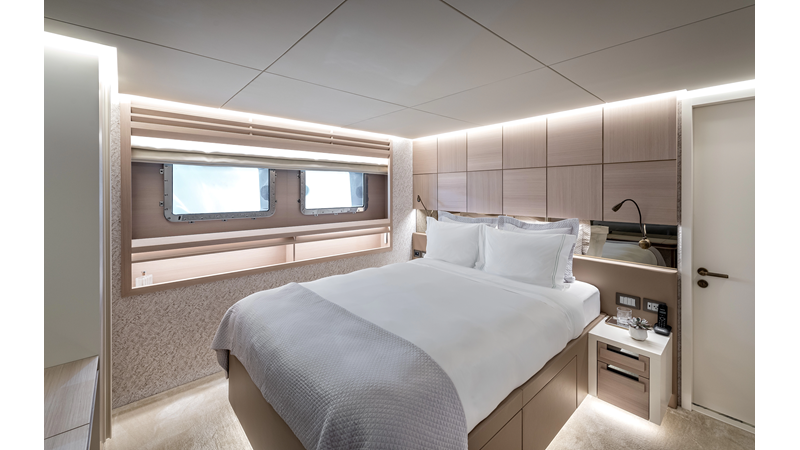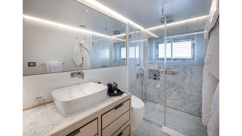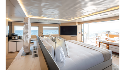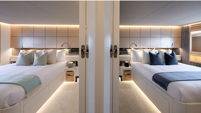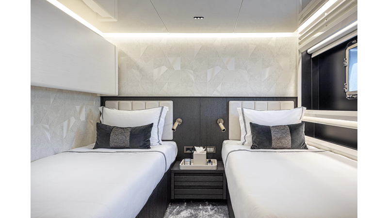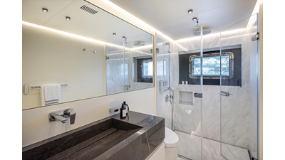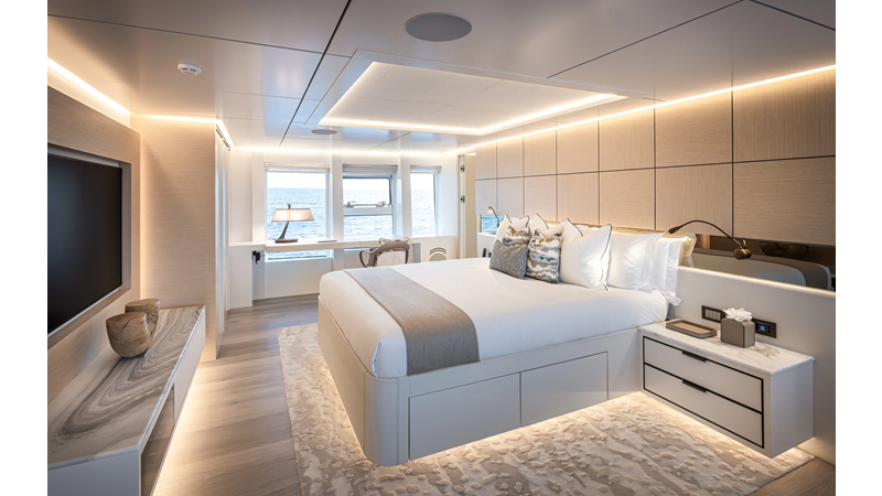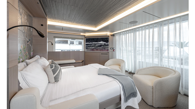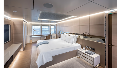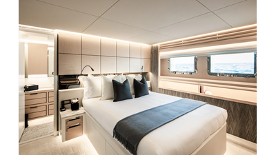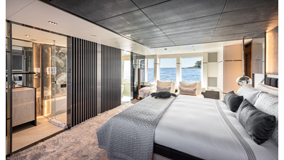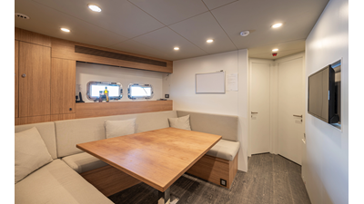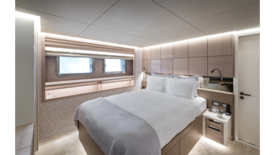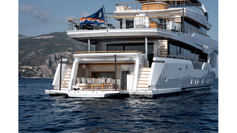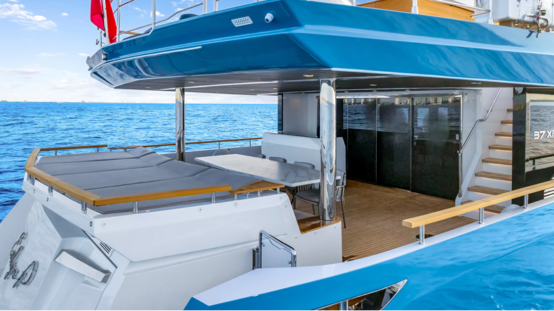 The 37XP is an improved version of the smaller 32XP. She features the same beam as the 32XP yet 4 meters were added forward of the engine room bulkhead thus adding to the guest & crew accommodation volume as well as the upper deck & sky lounge. This has drastically improved the levels of service allowing the guest accommodations to connect directly to the crew area & laundry facility resulting in seamless service. Added space has been created for a designated laundry room with walk-in refrigeration & freezer space giving the 37XP 30 days of autonomous cruising. Multiple layouts are available with 5, 6 or 7 cabin configurations. Even with a sky-lounge on the upper deck the 37XP can have a 6 cabin layout with a spacious on-deck master forward on the main deck + 5 cabins down below. Another popular layout that we have done on 2 37XP models which were delivered in 2023 is a cinema room in the lower deck which takes the place of one of the cabins. We have 2 37XP models that are under construction that have private owner's decks on the upper level which includes a spacious living accommodation, walk in closet and massive master bath that can feature a shower & tub. An additional meter was added aft of the engine room allowing for larger technical spaces & garage area with storage for water-sports equipment. The beach club area is air-conditioned and has a full bar area with refrigerator & ice maker and half bath. Additional laundry facility with sink is also a convenient feature for crew. Shore power converters are also nicely hidden with designated air conditioning units in place to keep the units operating at the correct temperatures when in use and avoiding any potential overheating issues. With a volume of 365 gross tons the 37XP has true ocean going capabilities with her full displacement steel hull. Keeping with that explorer mentality the boat deck has a 3 ton davit and enough space to easily carry a 9m tender + three full size jet skis and still have room for added gear.