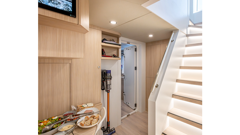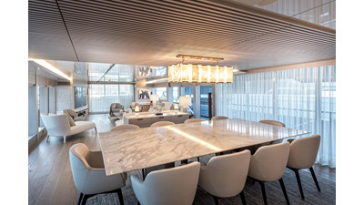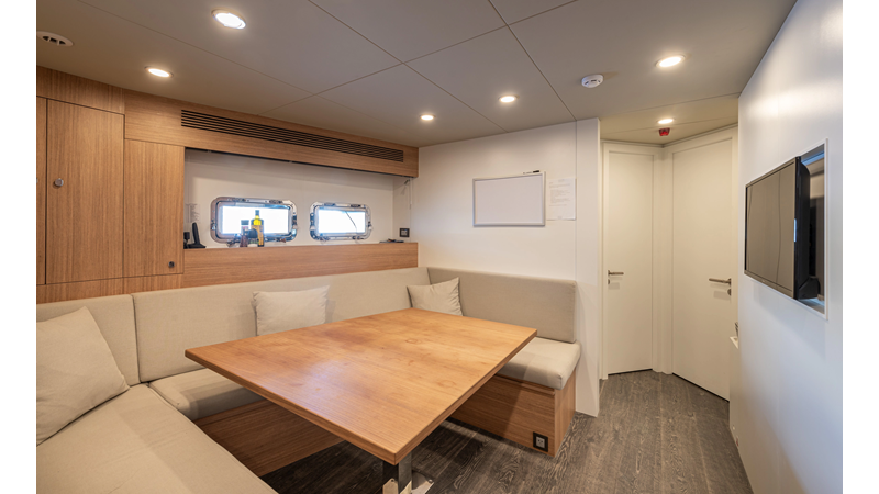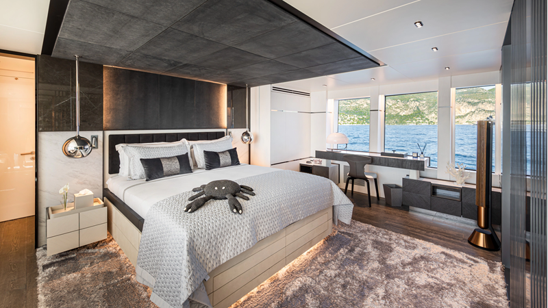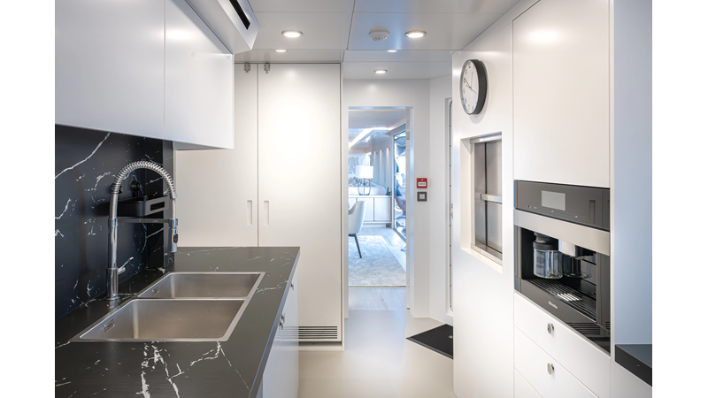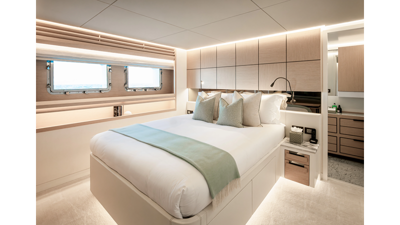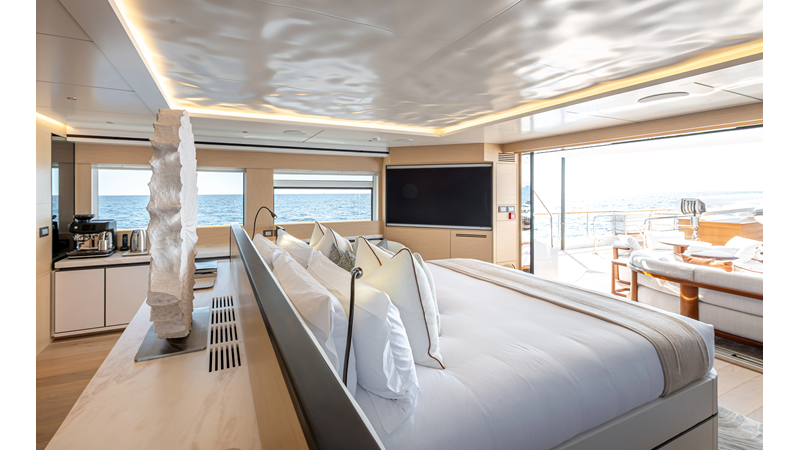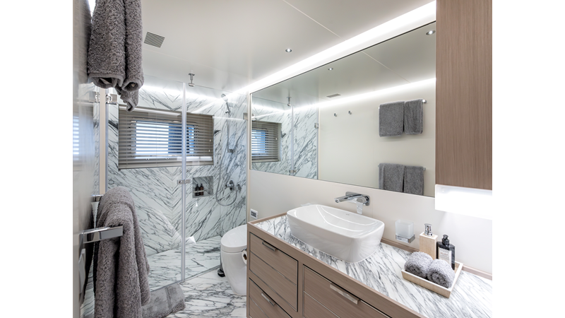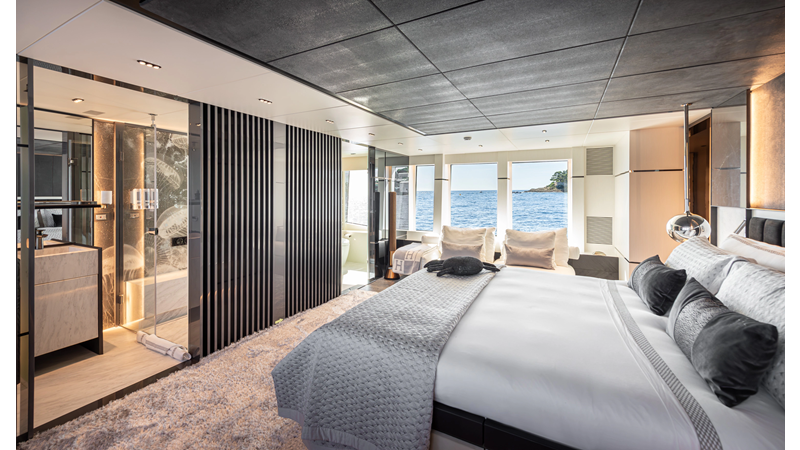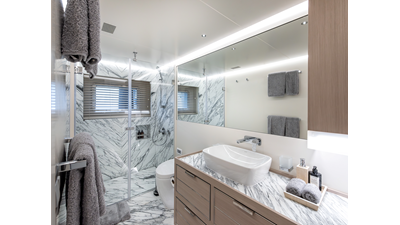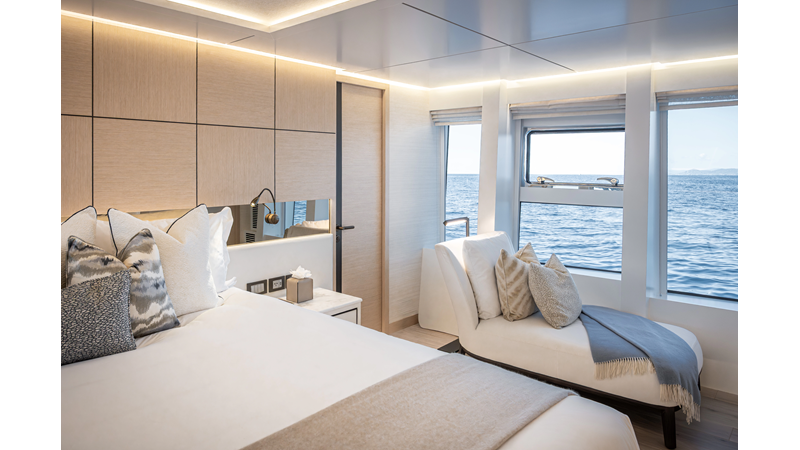 The 37XP is an improved version of the smaller 32XP. She features the same beam as the 32XP yet 4 meters were added forward of the engine room bulkhead thus adding to the guest & crew accommodation volume as well as the upper deck & sky lounge. This has drastically improved the levels of service allowing the guest accommodations to connect directly to the crew area & laundry facility resulting in seamless service. Added space has been created for a designated laundry room with walk-in refrigeration & freezer space giving the 37XP 30 days of autonomous cruising. Multiple layouts are available with 5, 6 or 7 cabin configurations. Even with a sky-lounge on the upper deck the 37XP can have a 6 cabin layout with a spacious on-deck master forward on the main deck + 5 cabins down below. Another popular layout that we have done on 2 37XP models which were delivered in 2023 is a cinema room in the lower deck which takes the place of one of the cabins. We have 2 37XP models that are under construction that have private owner's decks on the upper level which includes a spacious living accommodation, walk in closet and massive master bath that can feature a shower & tub. An additional meter was added aft of the engine room allowing for larger technical spaces & garage area with storage for water-sports equipment. The beach club area is air-conditioned and has a full bar area with refrigerator & ice maker and half bath. Additional laundry facility with sink is also a convenient feature for crew. Shore power converters are also nicely hidden with designated air conditioning units in place to keep the units operating at the correct temperatures when in use and avoiding any potential overheating issues. With a volume of 365 gross tons the 37XP has true ocean going capabilities with her full displacement steel hull. Keeping with that explorer mentality the boat deck has a 3 ton davit and enough space to easily carry a 9m tender + three full size jet skis and still have room for added gear.