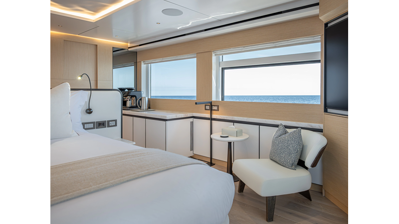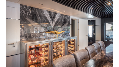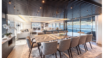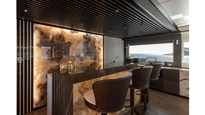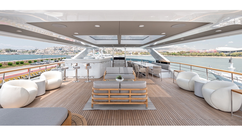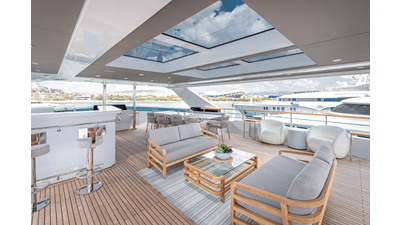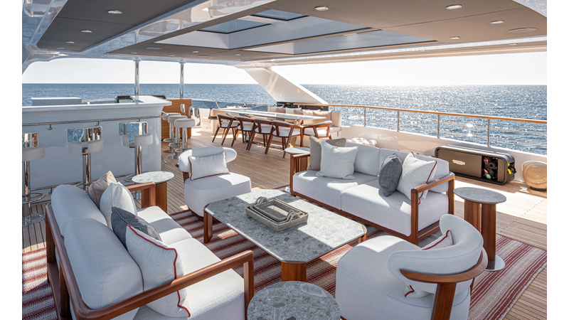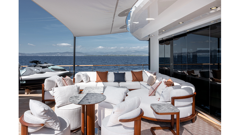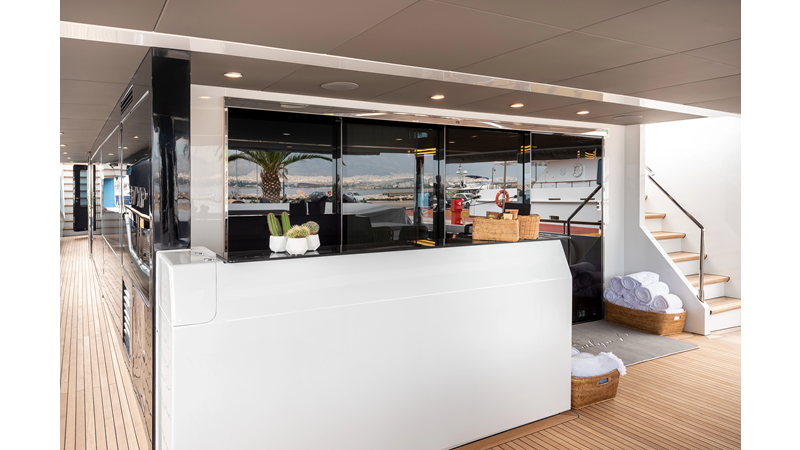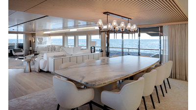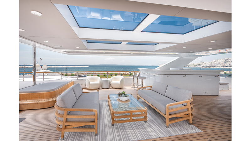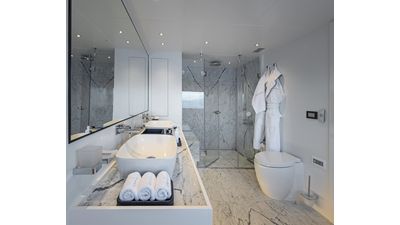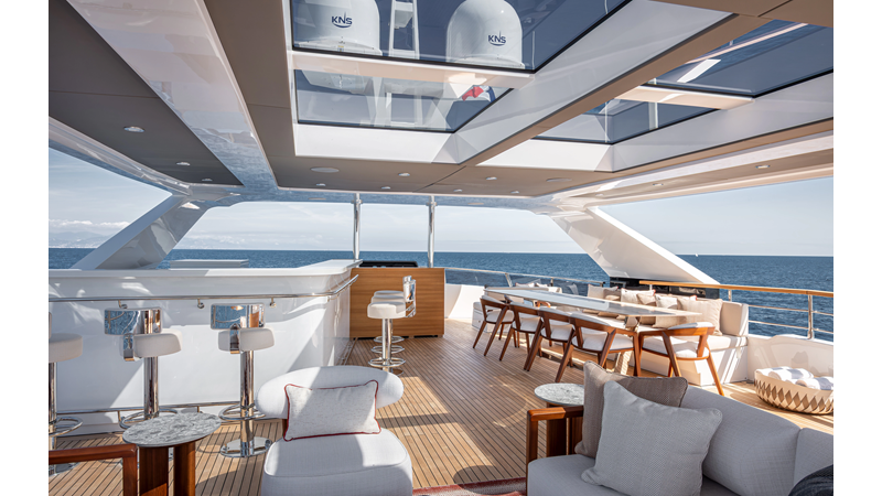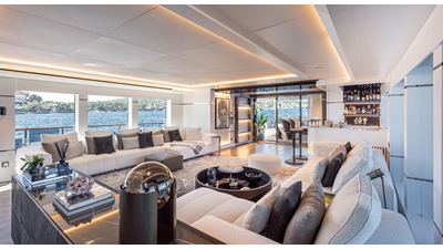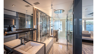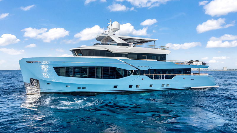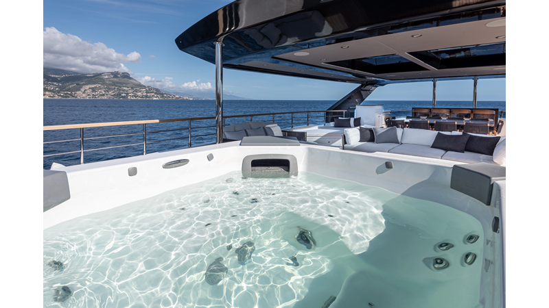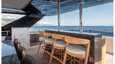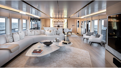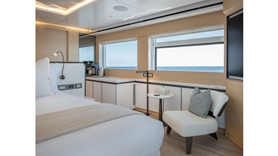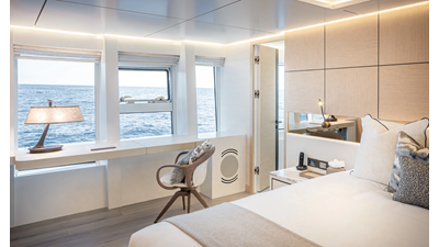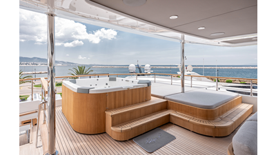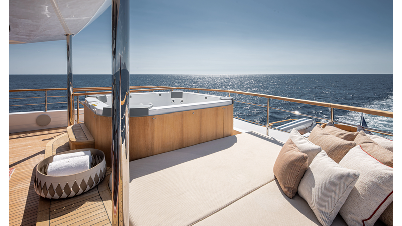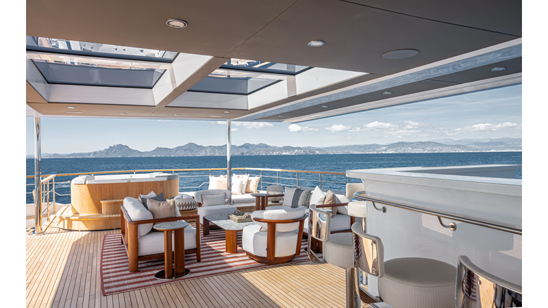 Full displacement steel hull, composite superstructure, 365 GRT expedition yacht with 5,000nm+ range, ability to carry 8.5m tender + 3 jet skis on the boat deck, 5 or 6 cabin layouts, designated beach club and Jacuzzi on the sundeck that features a full service bar.