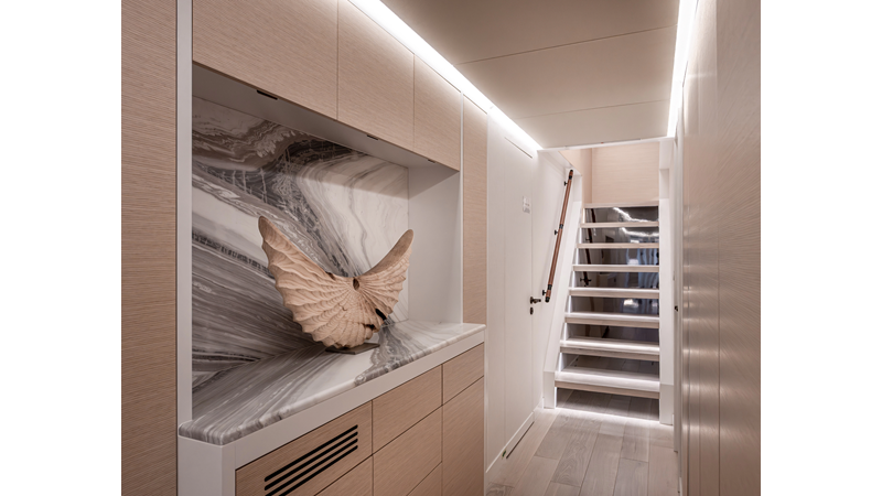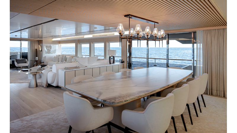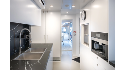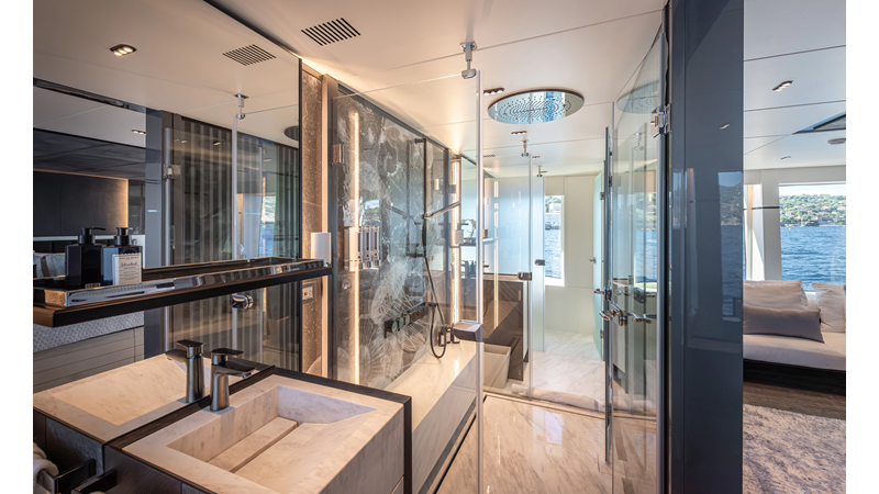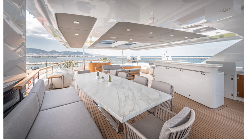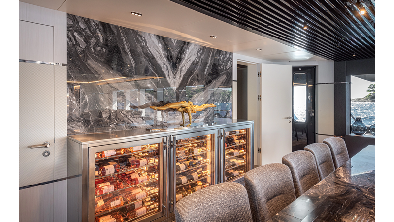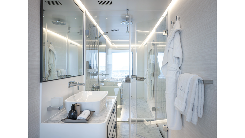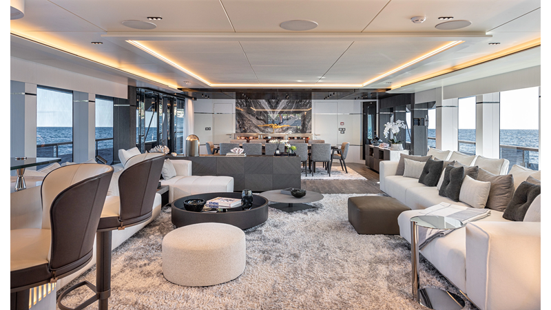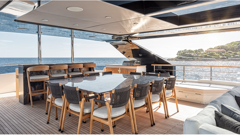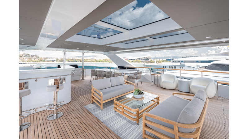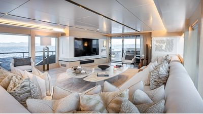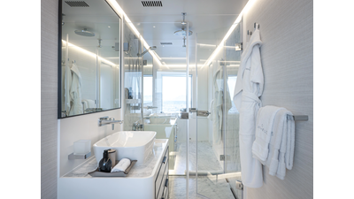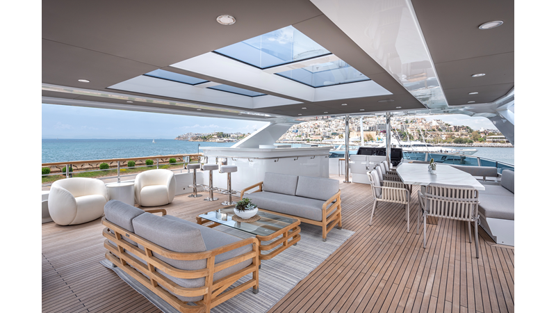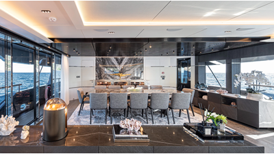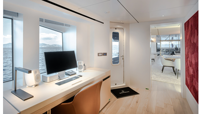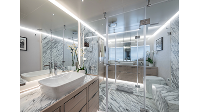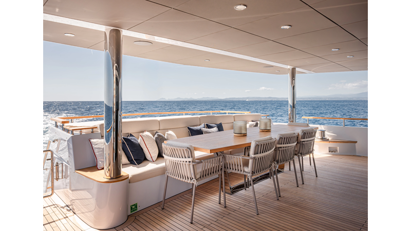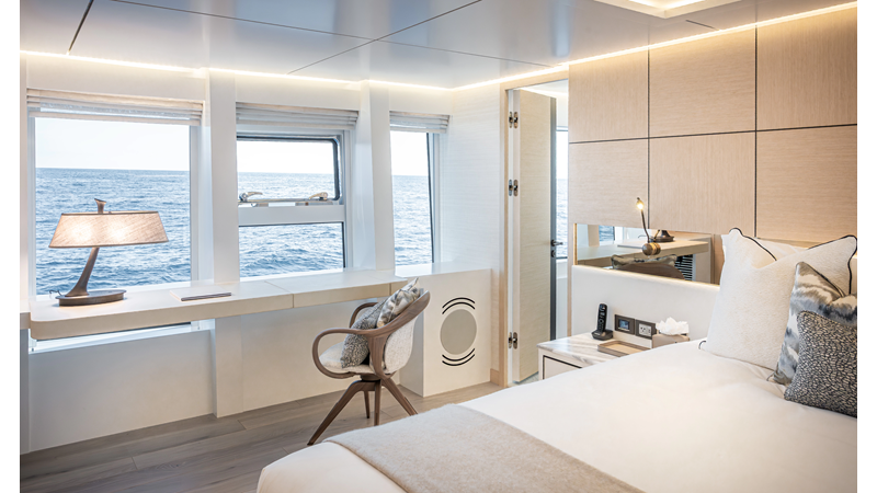 Full displacement steel hull, composite superstructure, 365 GRT expedition yacht with 5,000nm+ range, ability to carry 8.5m tender + 3 jet skis on the boat deck, 5 or 6 cabin layouts, designated beach club and Jacuzzi on the sundeck that features a full service bar.