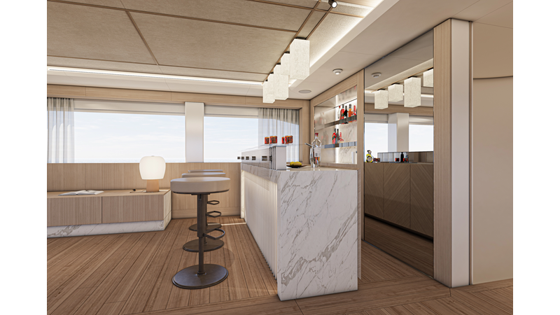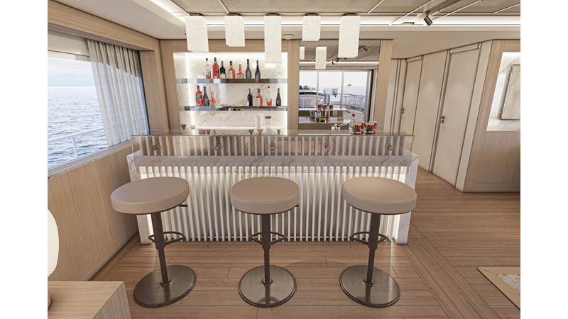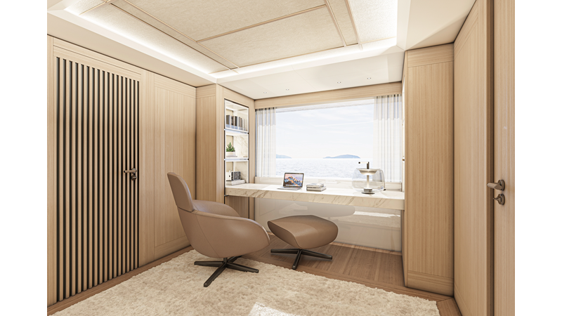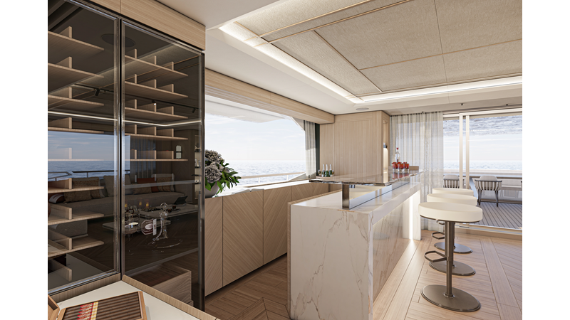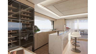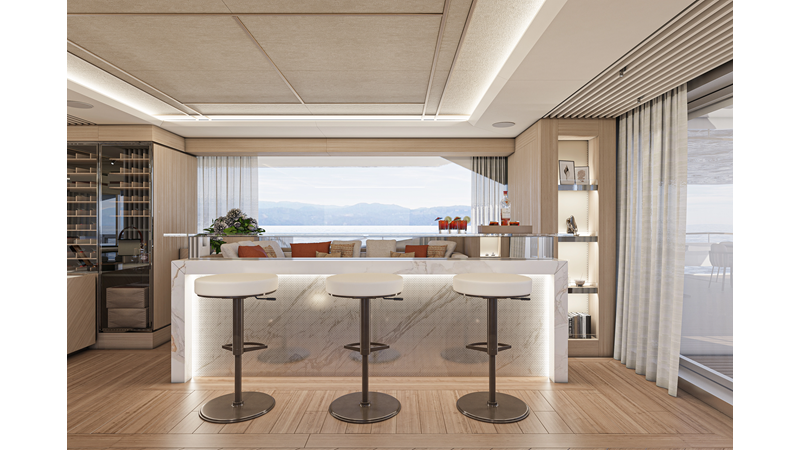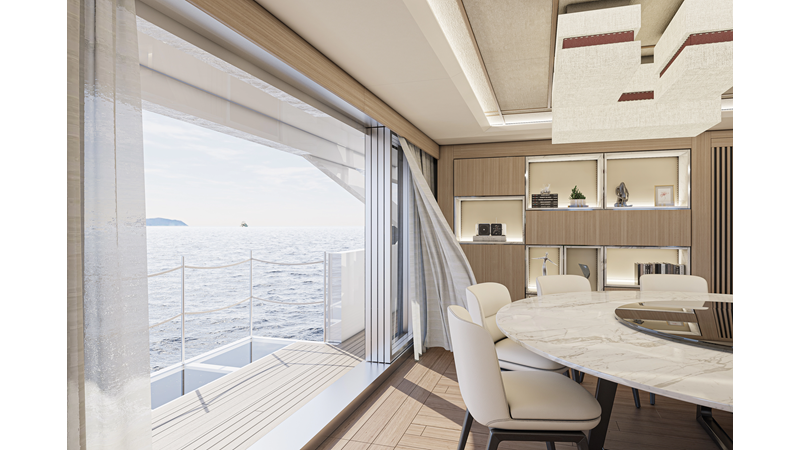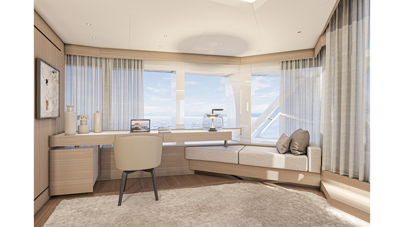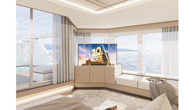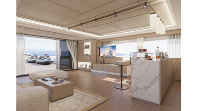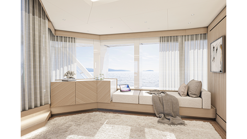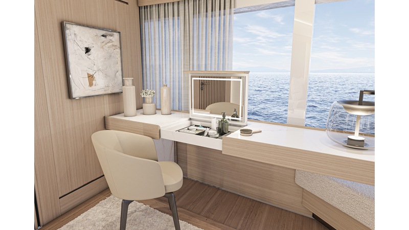 The 45XP is a ground breaking design not just with her sleek profile lines, but also due to the forward facing master cabin complete with private exterior deck, jacuzzi with waterfall feature, and floor to ceiling glass windows. A true master piece with the interior decor being developed by world renowned Milan based design studio Hot Lab.