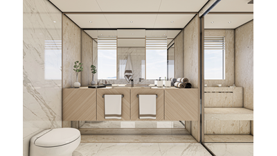 Each 45XP is bespoke and customized at the request of the individual client. From the exterior paint scheme, interior layout, interior decor, garage amenities, deck spaces - each area replies on the input of the client to be finalized creating a perfect global cruiser. Full displacement steel hull, 6,000 nm range, expansive boat deck with 3 ton davit allowing space for a 9 m tender plus 3 full size jet skis and additional water sports toys are all best in class statistics.